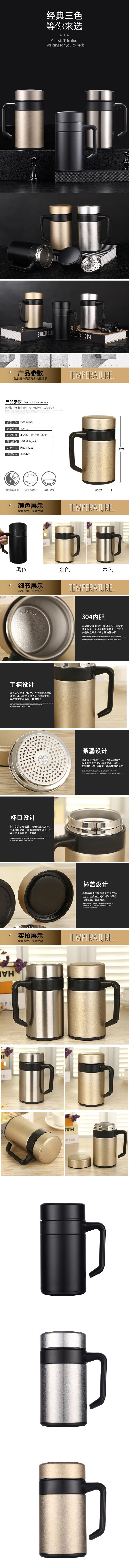 三极户外 304不锈钢保温杯 TP3636 金色 400mL 1个