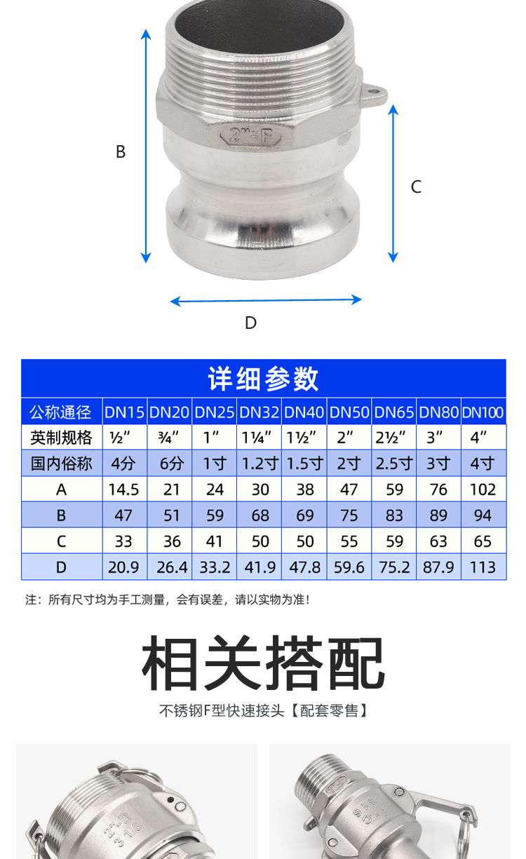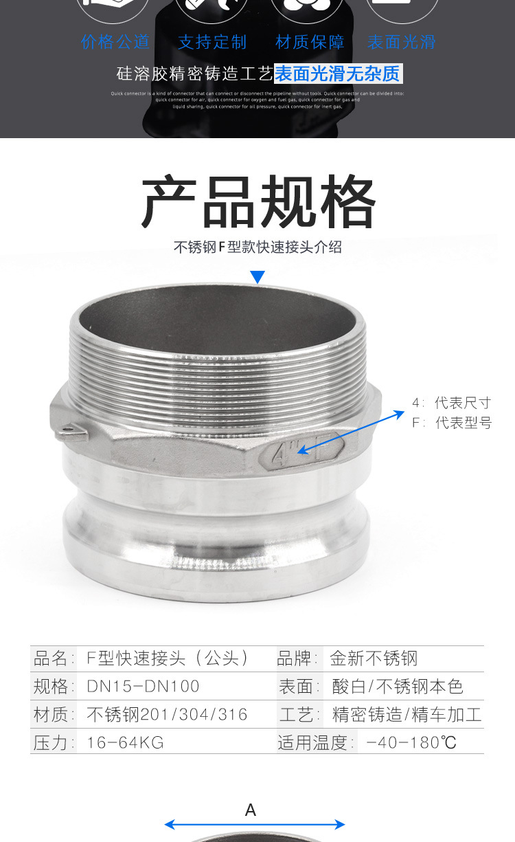 海斯迪克 快速接头 hsxy233 不锈钢 F型DN25-1寸(1″) 1个