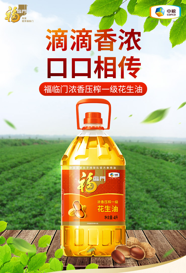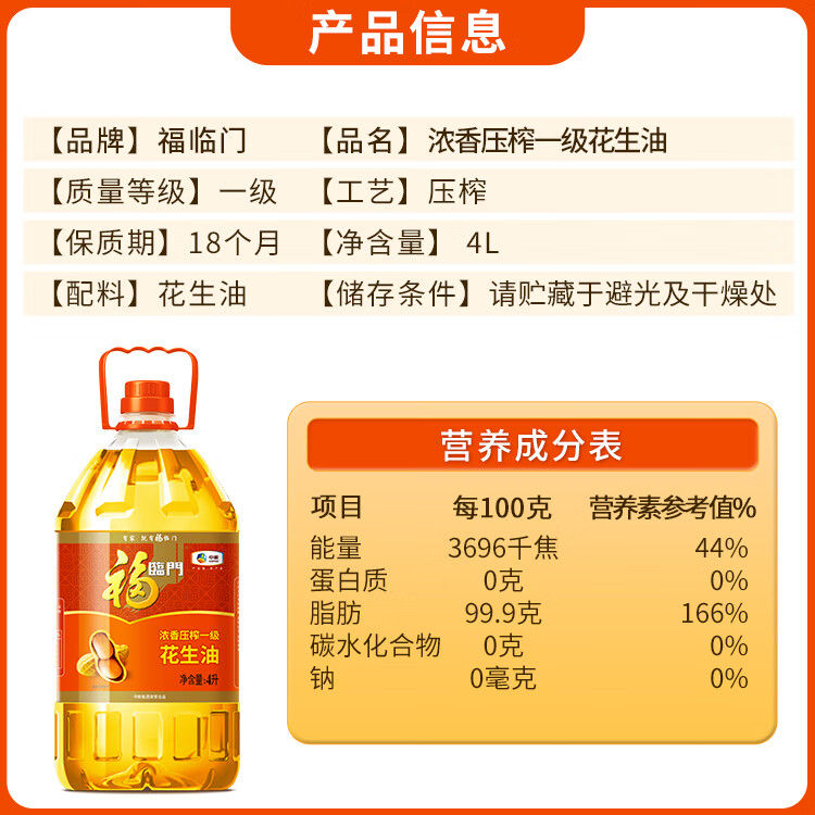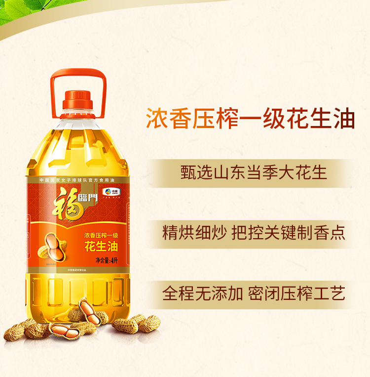 福临门 压榨一级花生油 4L 1桶
