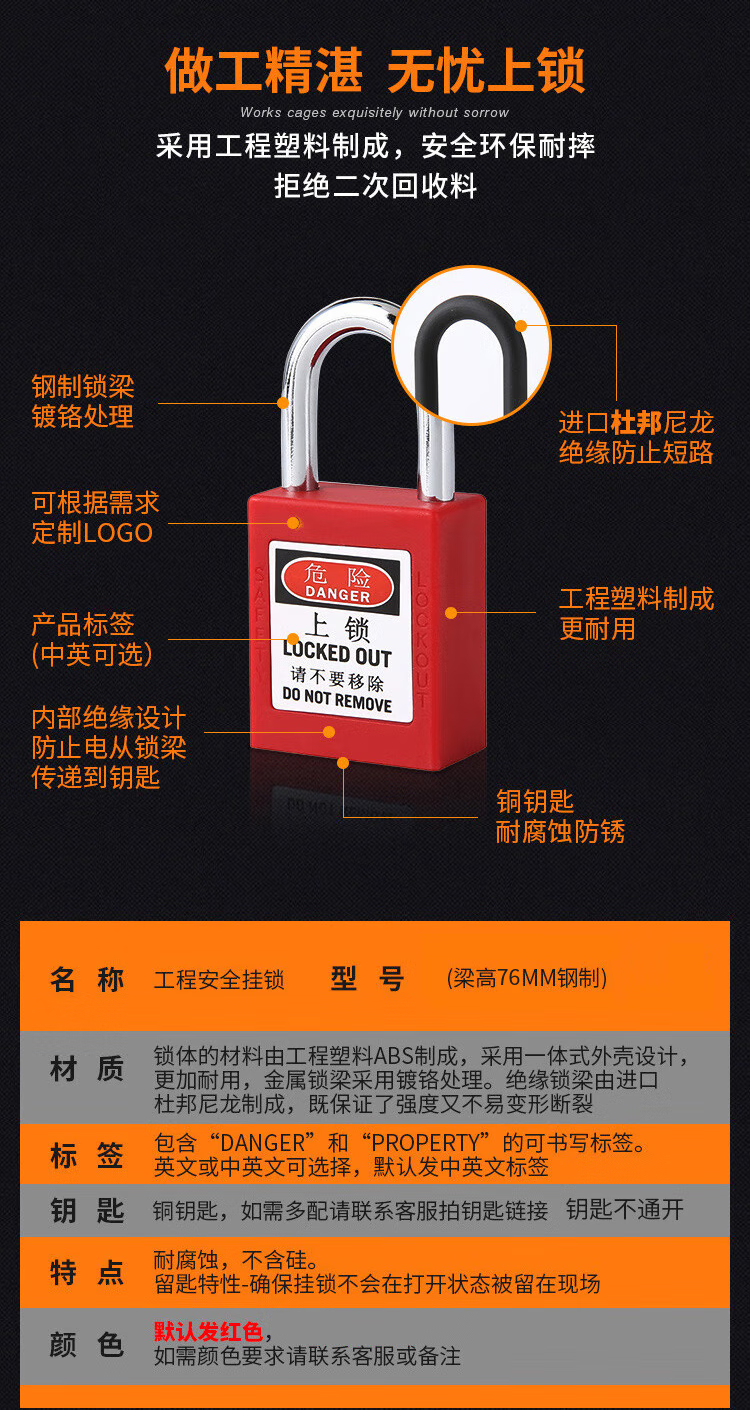 海斯迪克 贝迪型安全挂锁 hs-657 红色 130mm 1个
