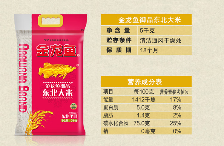 • 商品名称:金龙鱼 御品 东北平原大米