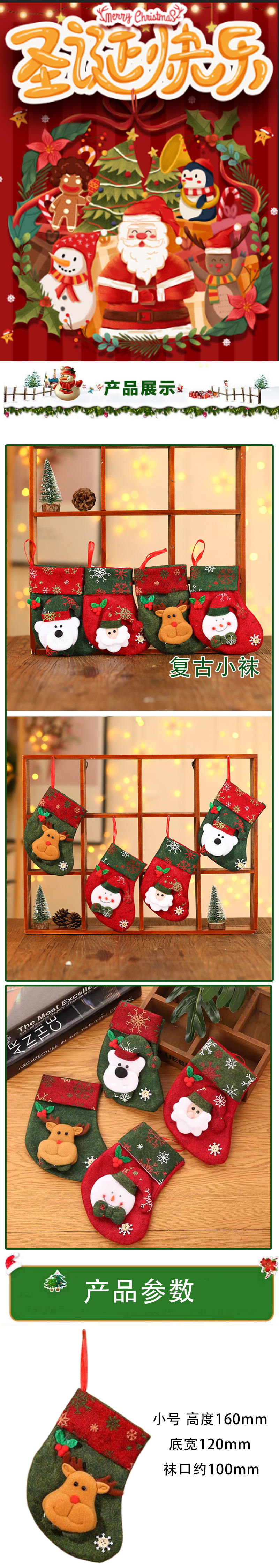 海斯迪克 圣诞节装饰圣诞袜 XRSD-066 小号复古袜【小鹿】 高度160mm 底宽120mm 袜口约100mm 1个