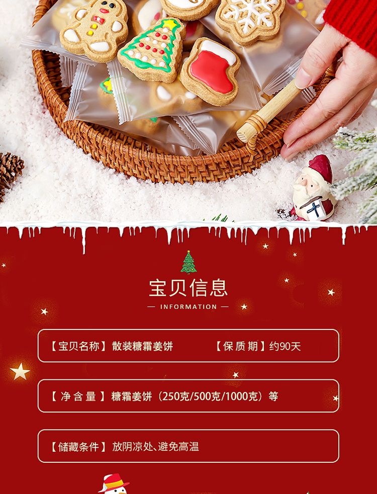海斯迪克 圣诞姜饼人饼干 hsxy109 【混装】糖霜500克 1包