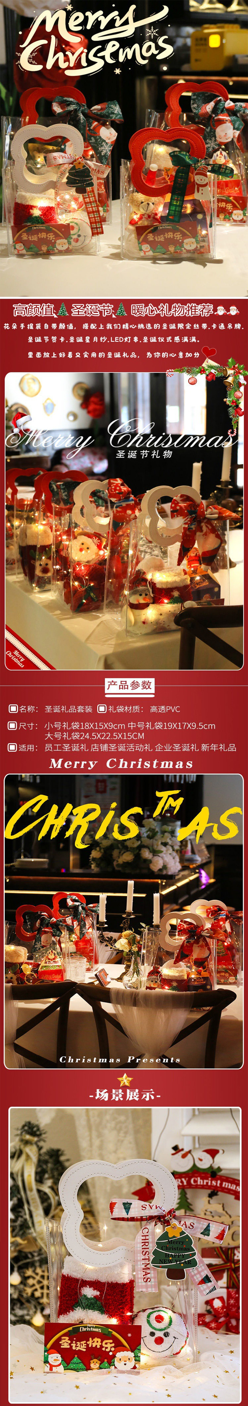 • 规格大号花朵红手提+圣诞丝巾+绿色圣诞袜+LED灯串+圣诞苹果盒+圣诞贺卡+圣诞手套+圣诞星月纱