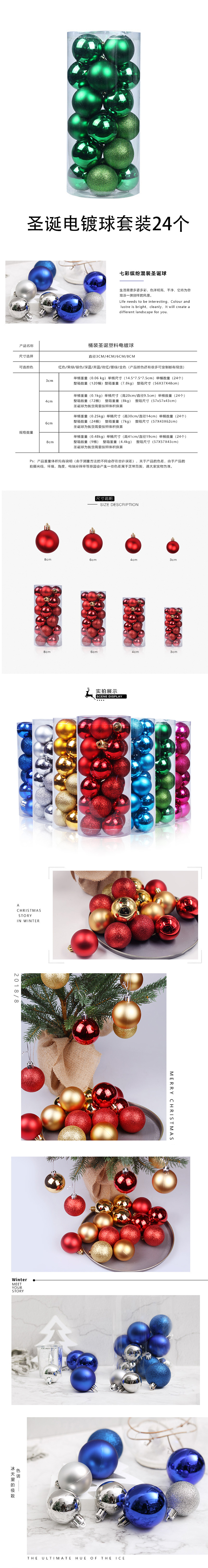 海斯迪克 圣诞球套装 XRQ028 60mm 深绿色 24个 1套
