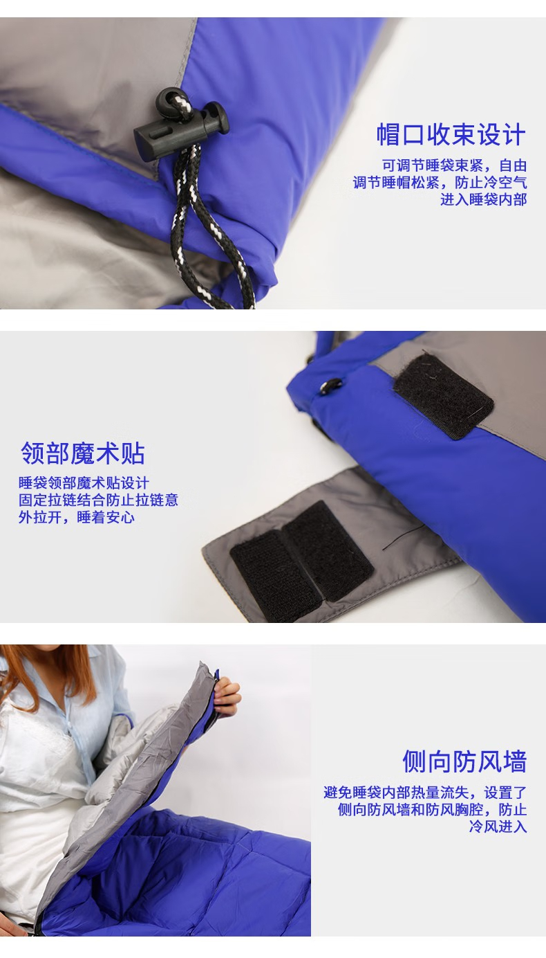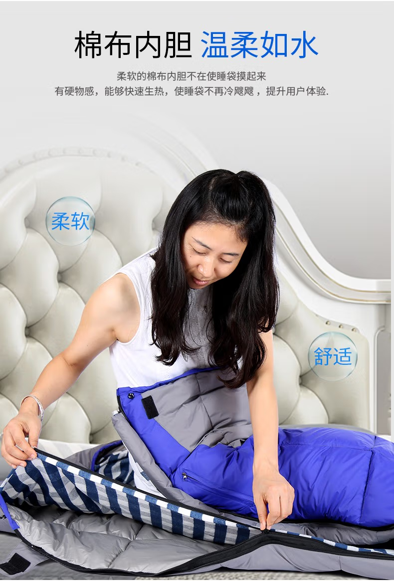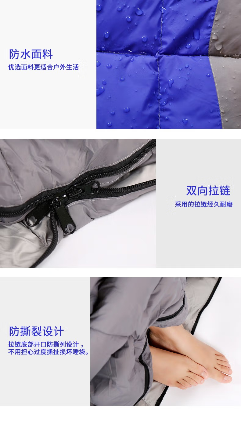 三极户外 可拆内胆羽丝睡袋 TP2913 蓝色 羽丝1.5kg 210*80cm 1个