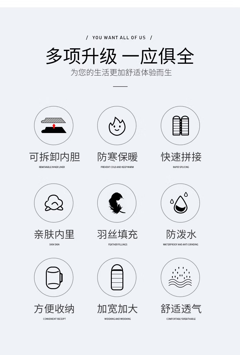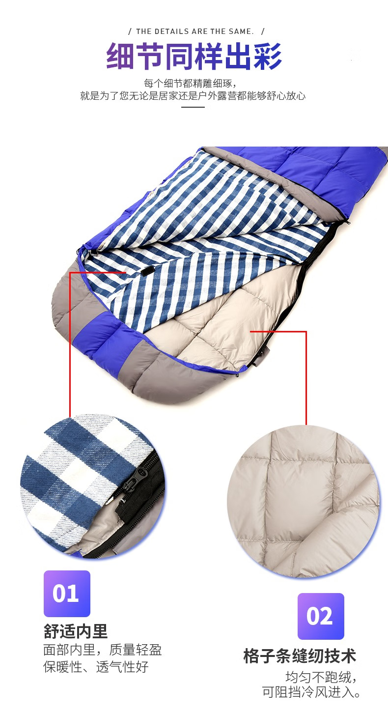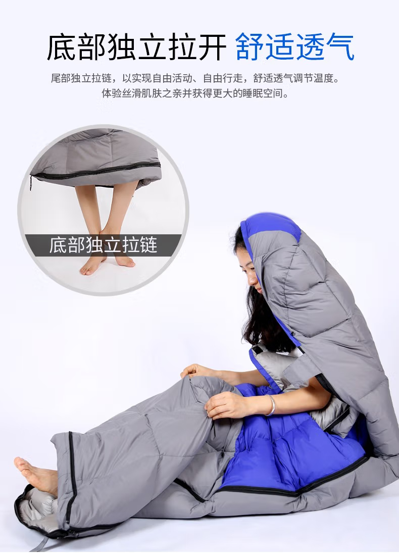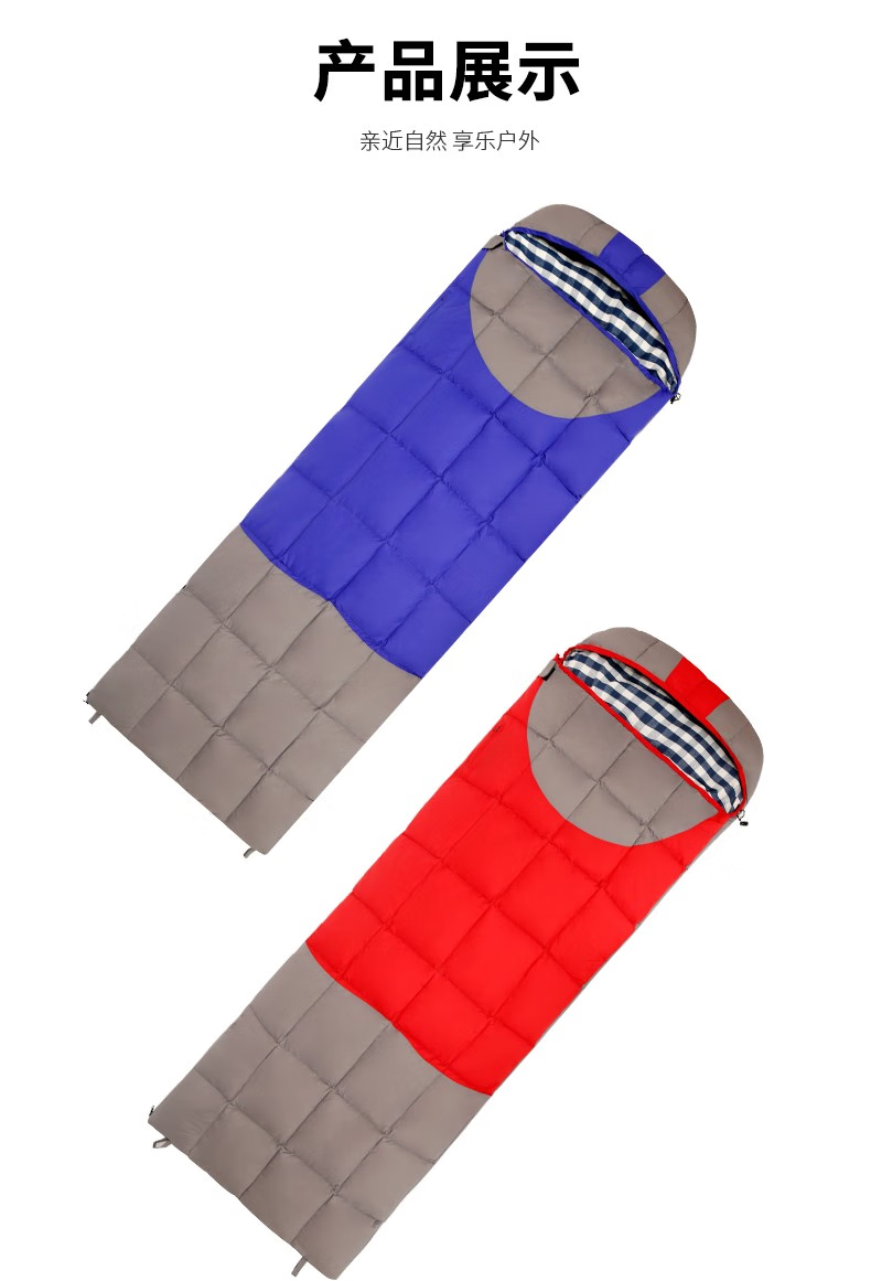 三极户外 可拆内胆羽丝睡袋 TP2913 蓝色 羽丝1.5kg 210*80cm 1个