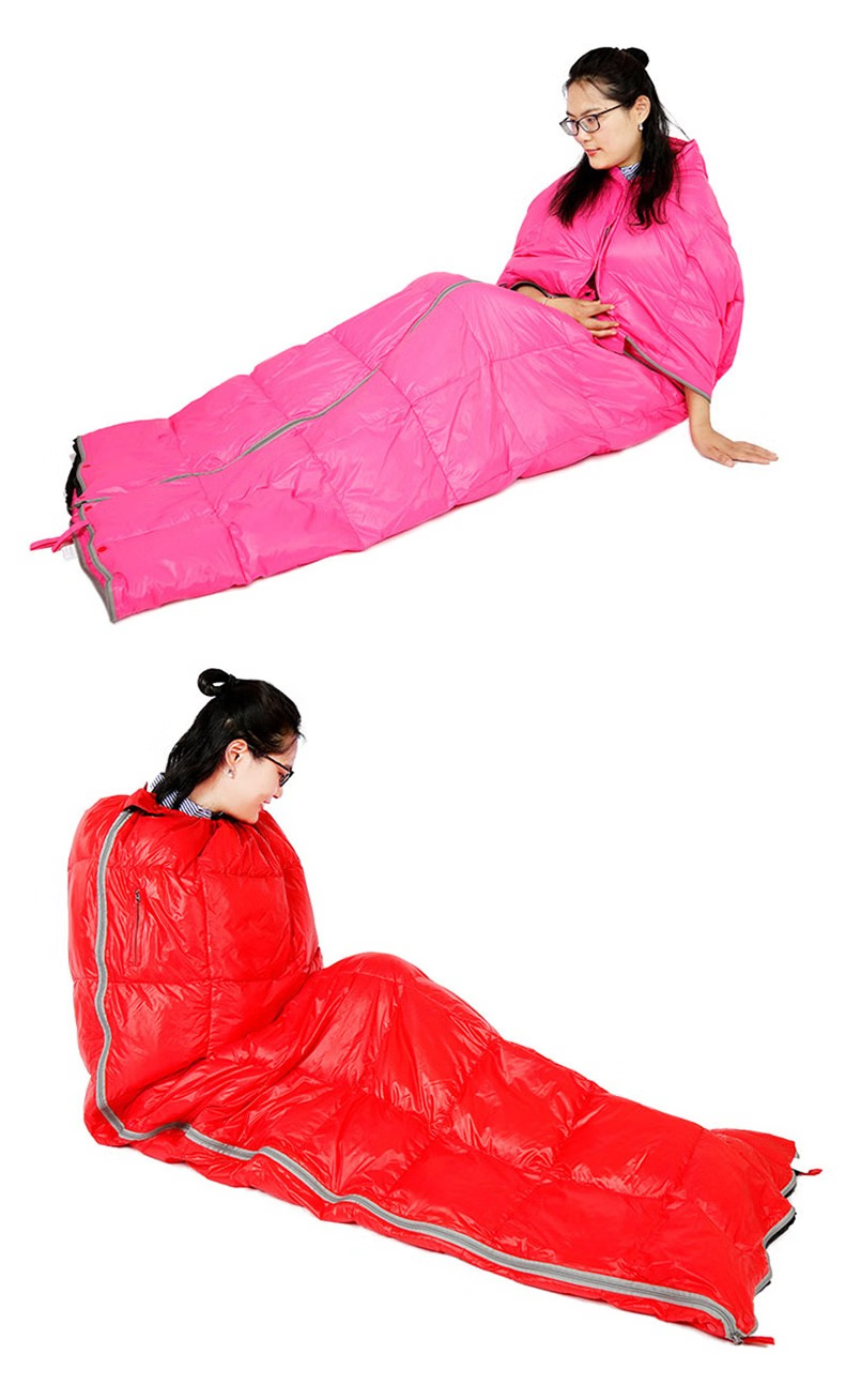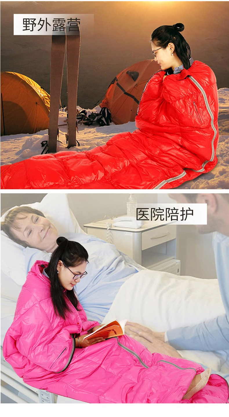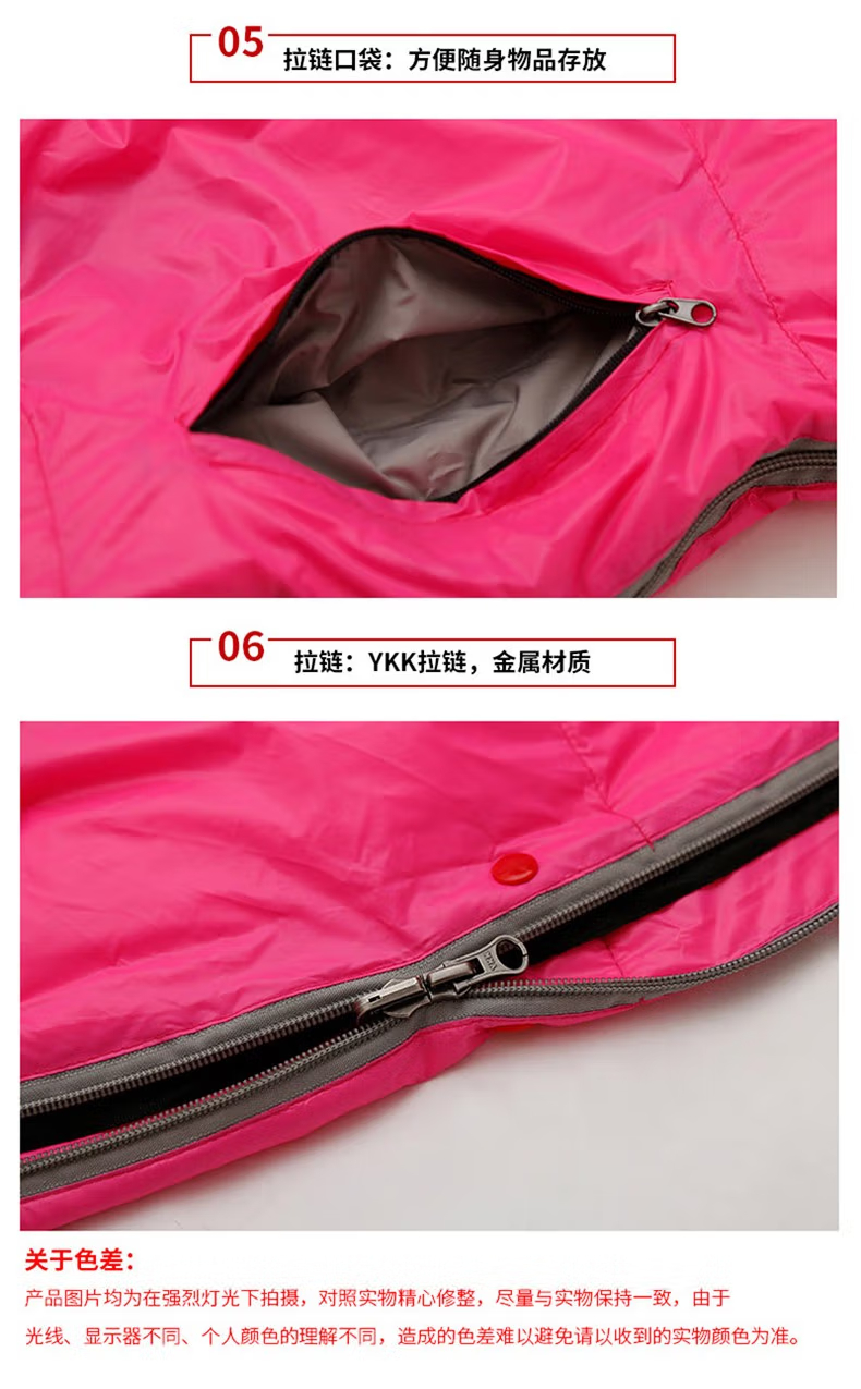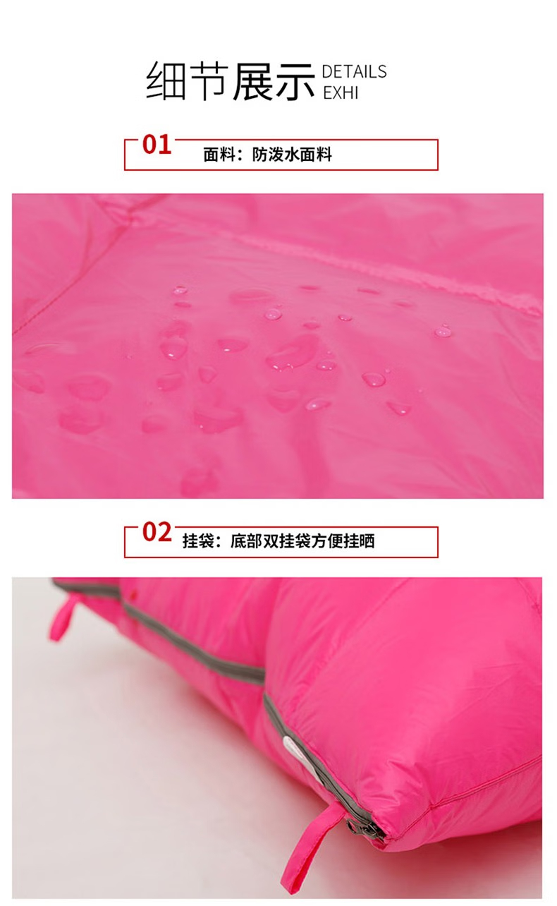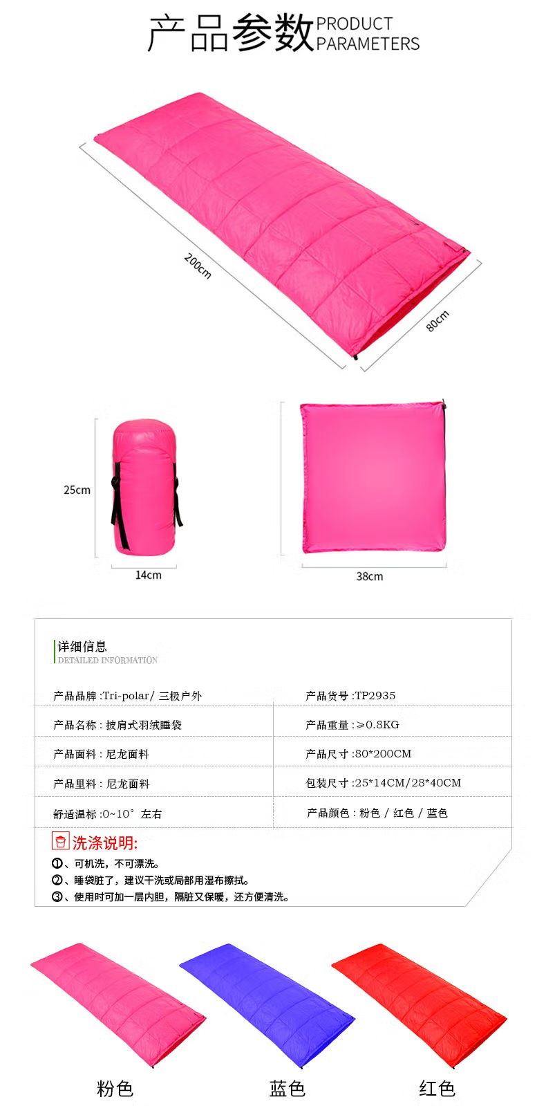 三极户外 可伸手单人羽丝睡袋 TP2935 粉色 羽丝800g 210*80cm 1个