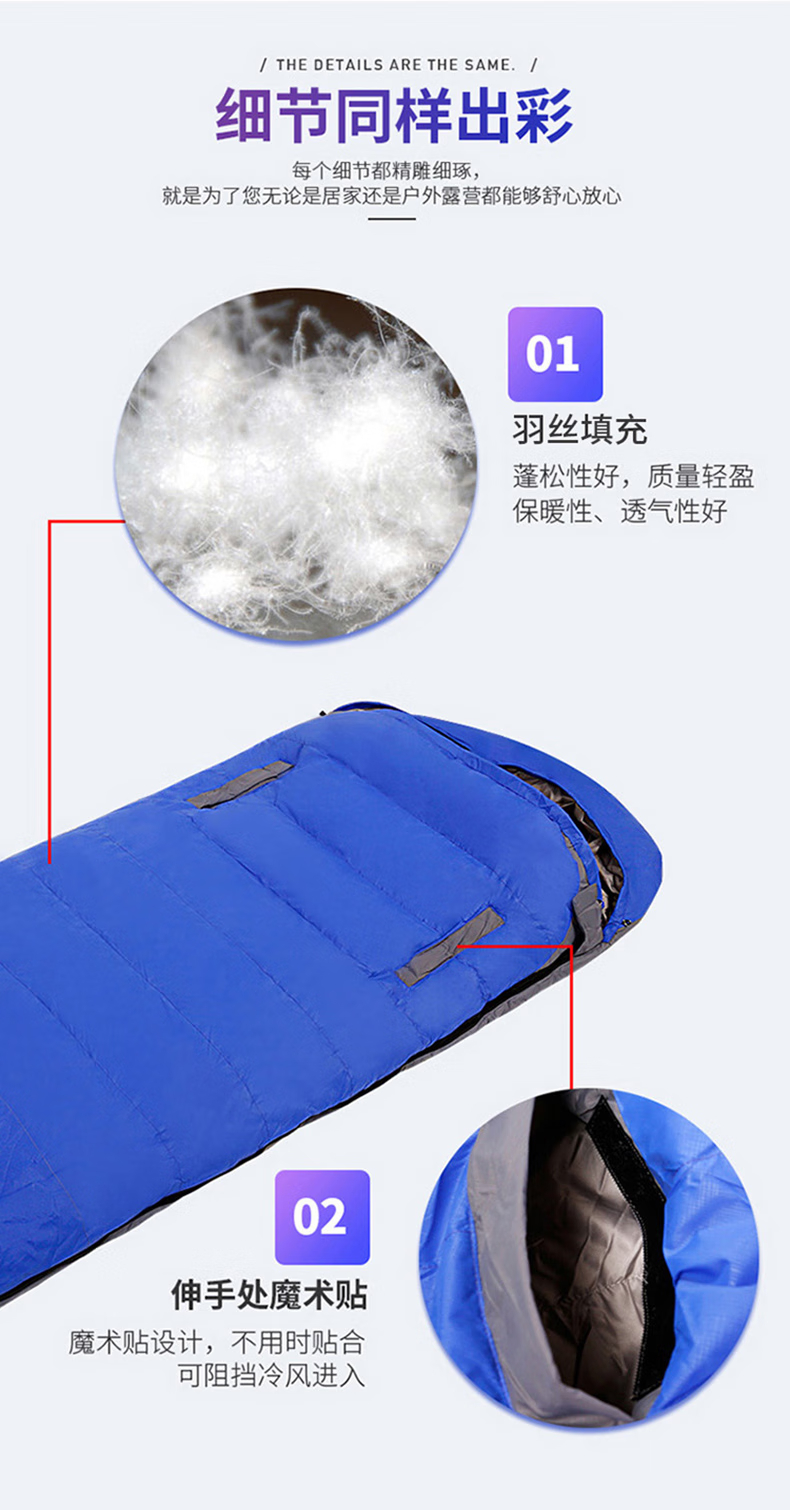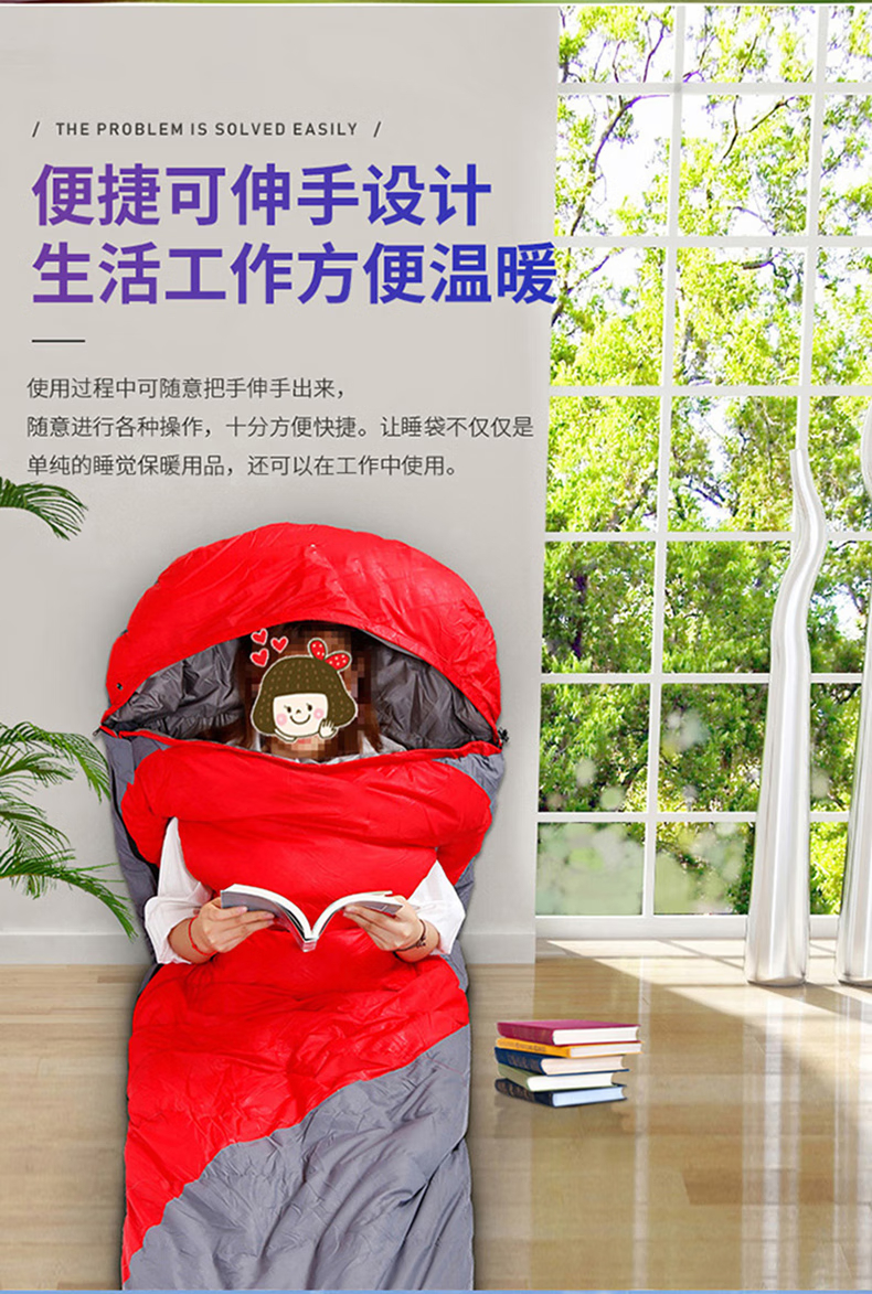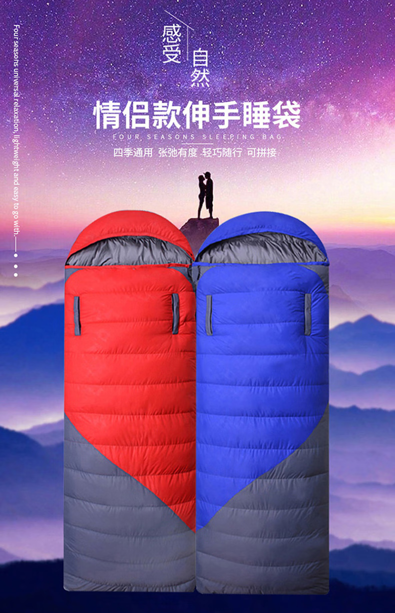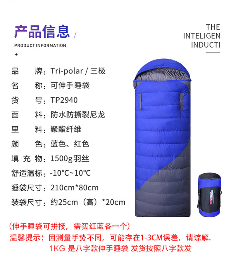 三极户外 可伸手羽丝睡袋 TP2940 红色 羽丝1kg 210*80cm 1个