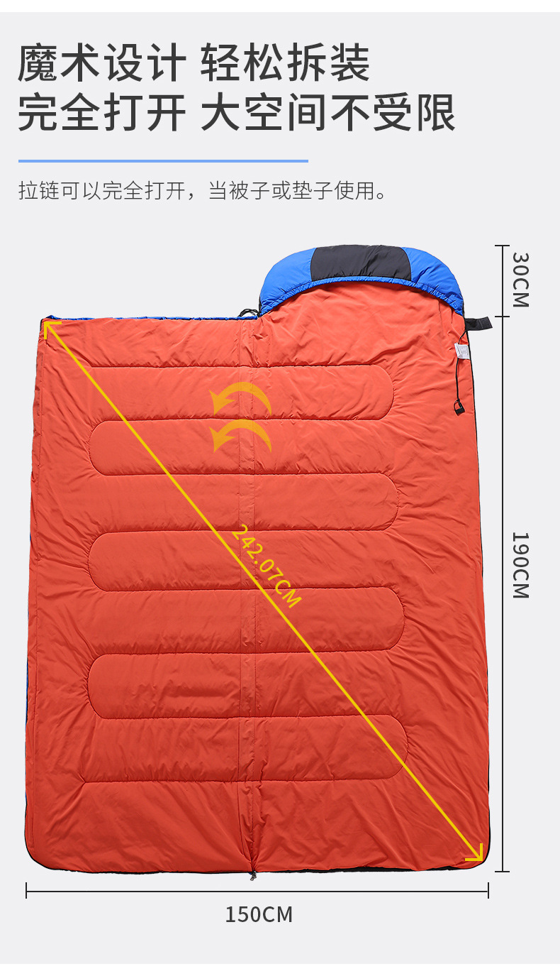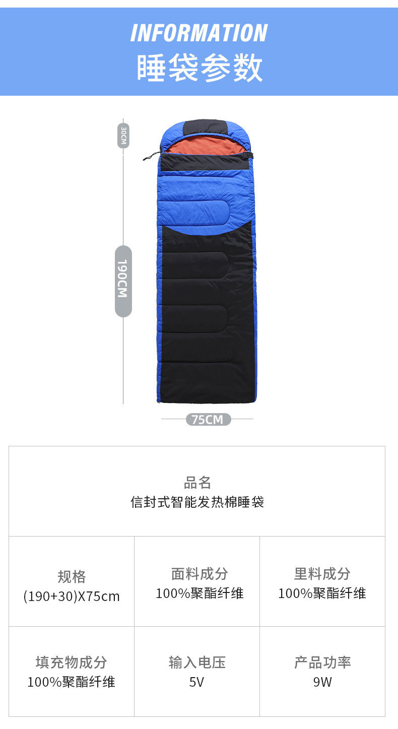 三极户外 加热棉睡袋 TP2946 (190+32)*75cm 1个