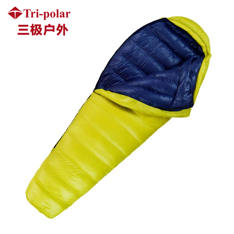 三极户外 保暖睡袋 TP2977 黄拼藏青 羽丝1200g 210*80cm 1个