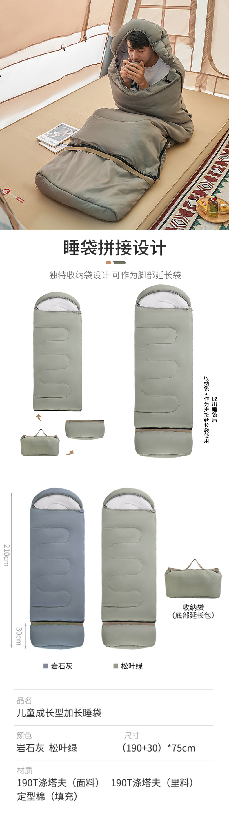 三极户外 成长型加长棉睡袋 TP3025 松叶绿 (190+30)*75cm 1.4KG 1个