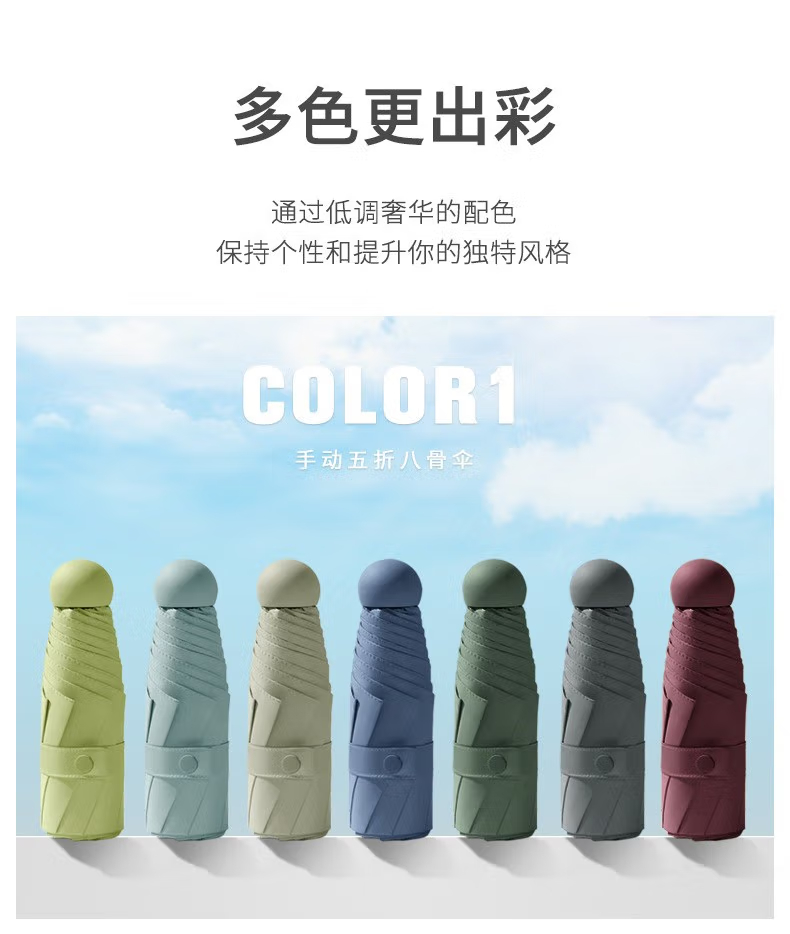 三极户外 五折手动晴雨伞 TP7052 抹茶绿 高19/55cm 直径106cm 8骨 1把