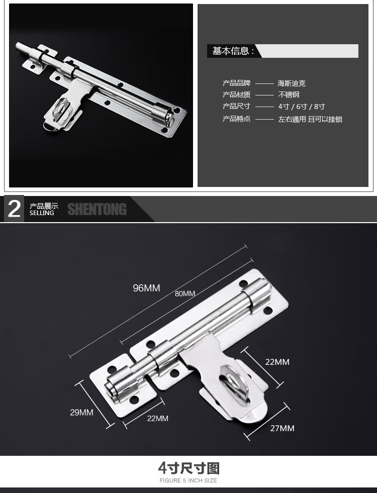 海斯迪克 锁扣 HKSY-38 不锈钢 带扣款 6寸 1个