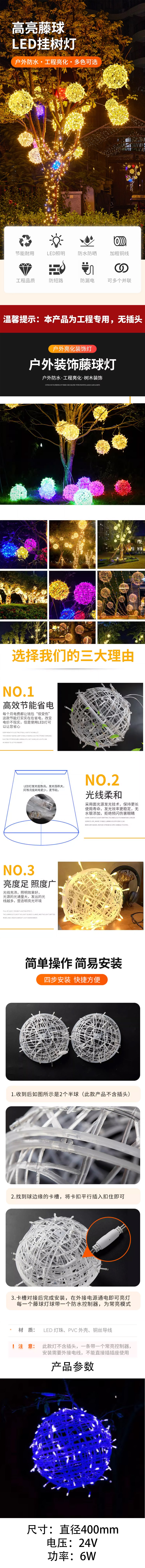 海斯迪克 超亮藤球灯 hsxy012 蓝色 0.06W 40CM 1个