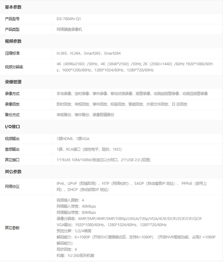 海康威视 智惠Q系列1盘位双网口录像机 DS-7804N-Q1/4N(标配) 1盘位 1台