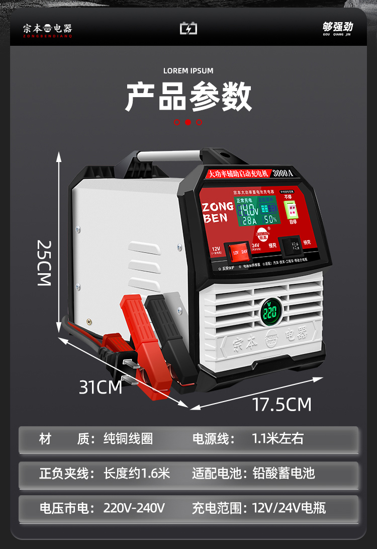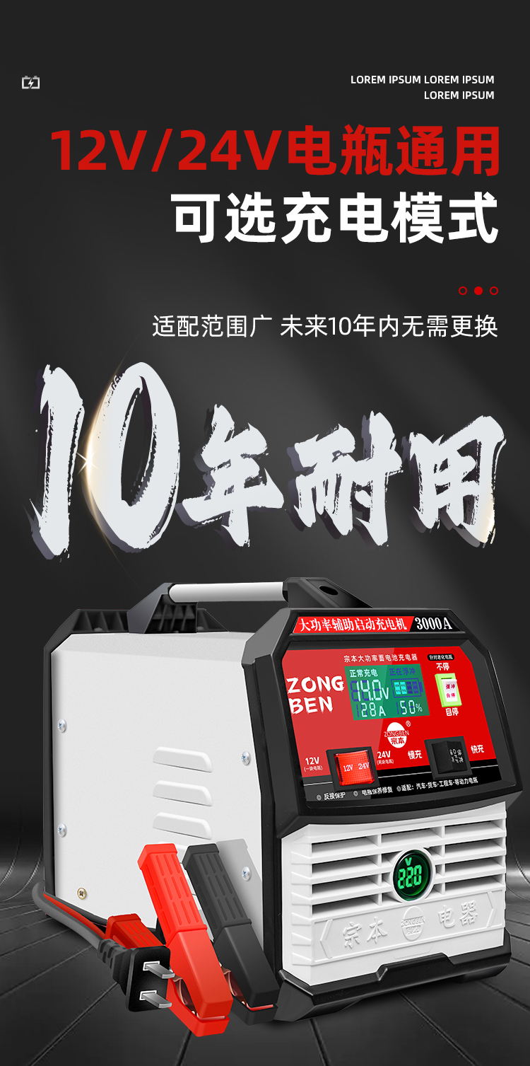 宗本 大功率充电器 数显电压 3000A 1台