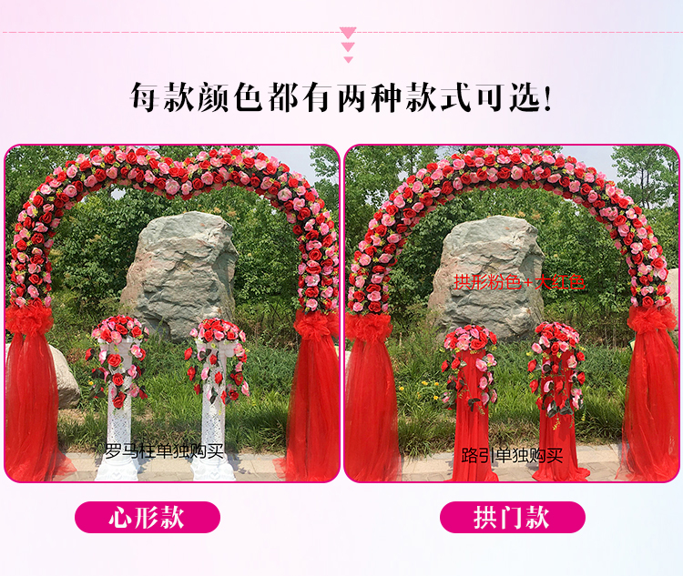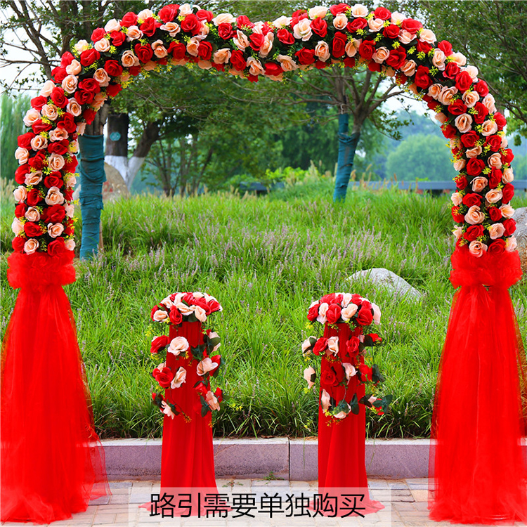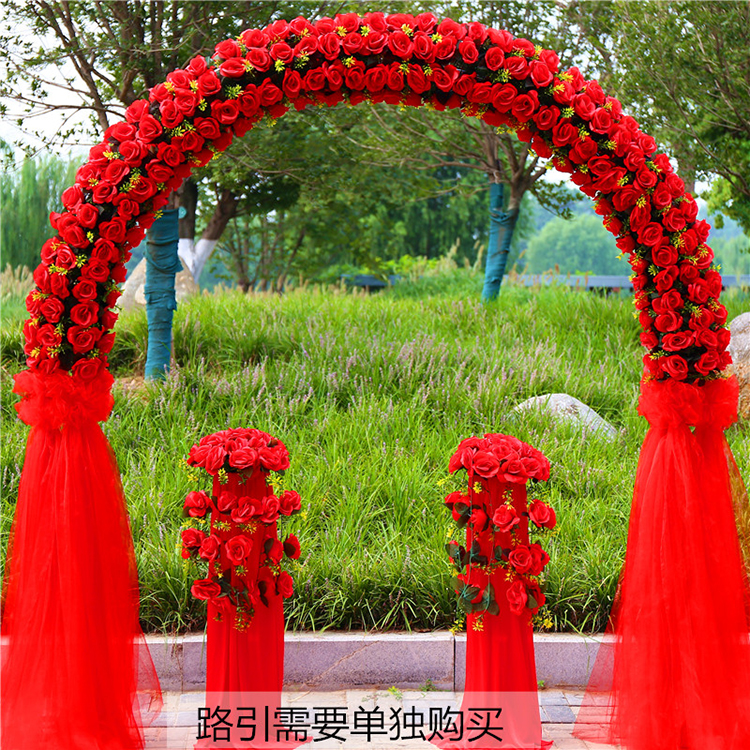 顺航 拱门装饰布置 42朵香槟+大红 PVC塑料支架款 1件