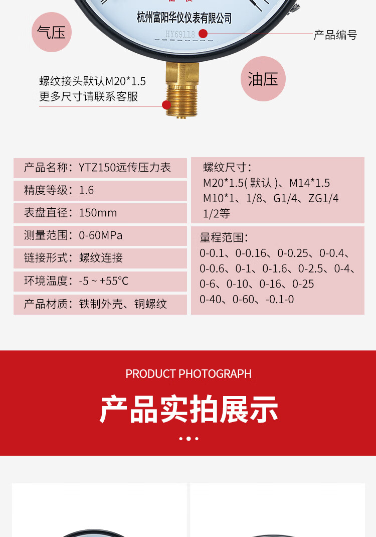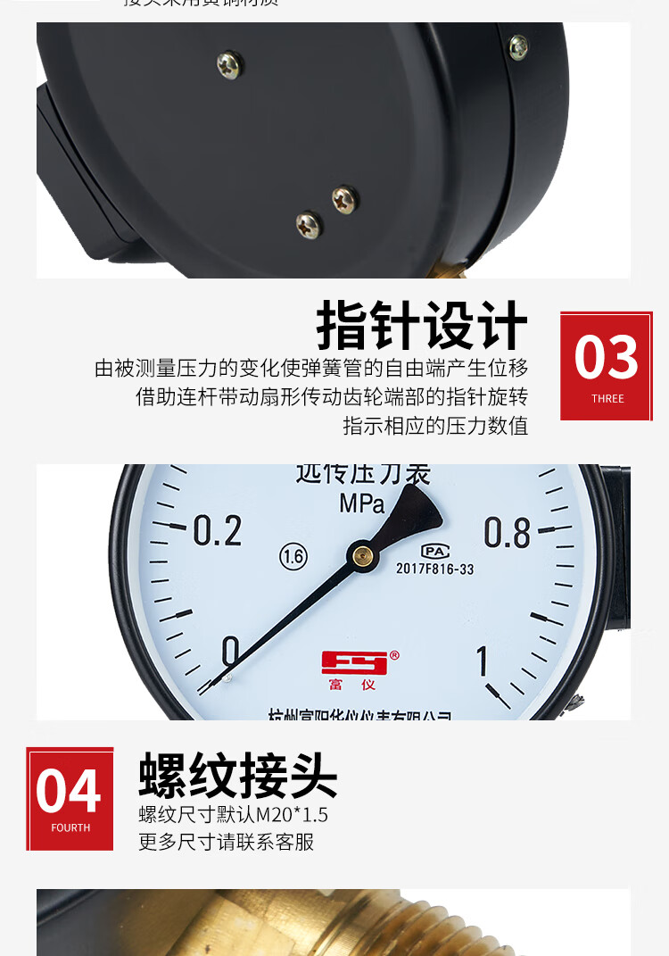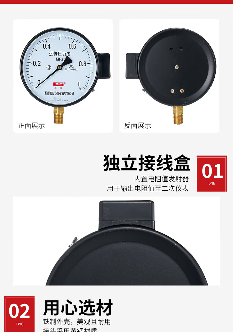 富仪 电阻远传压力表 径向恒压供水显示远程控制变频器 YTZ-150 0-1MPA 1个