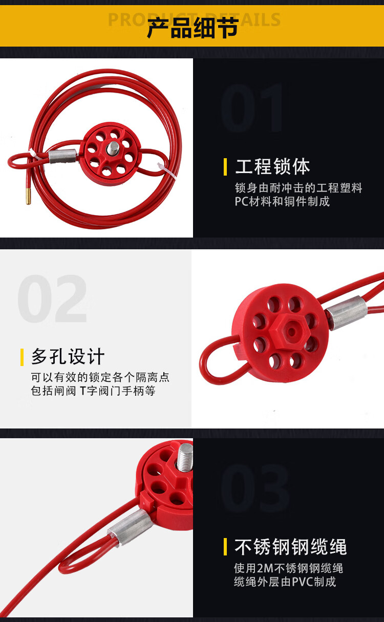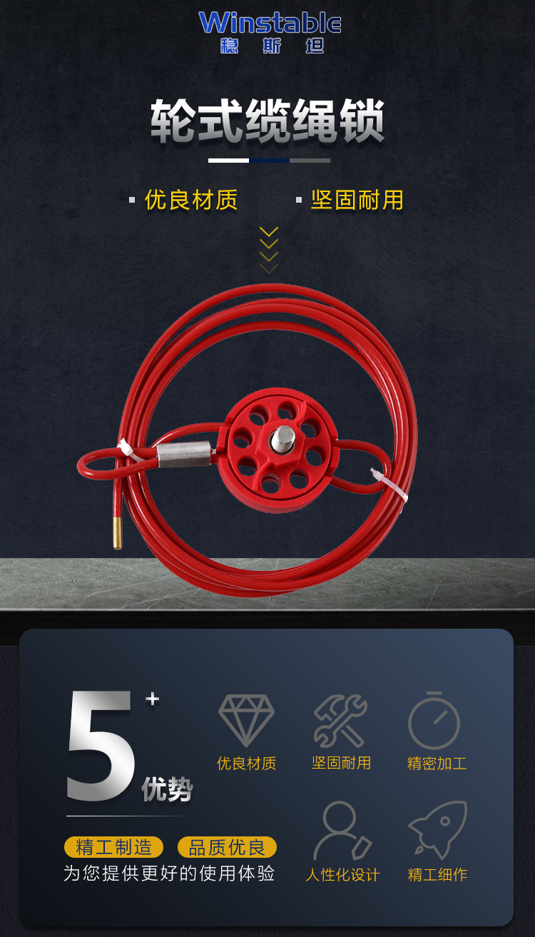 稳斯坦 钢缆锁具 W7153 轮式 直径3.8mm 1个