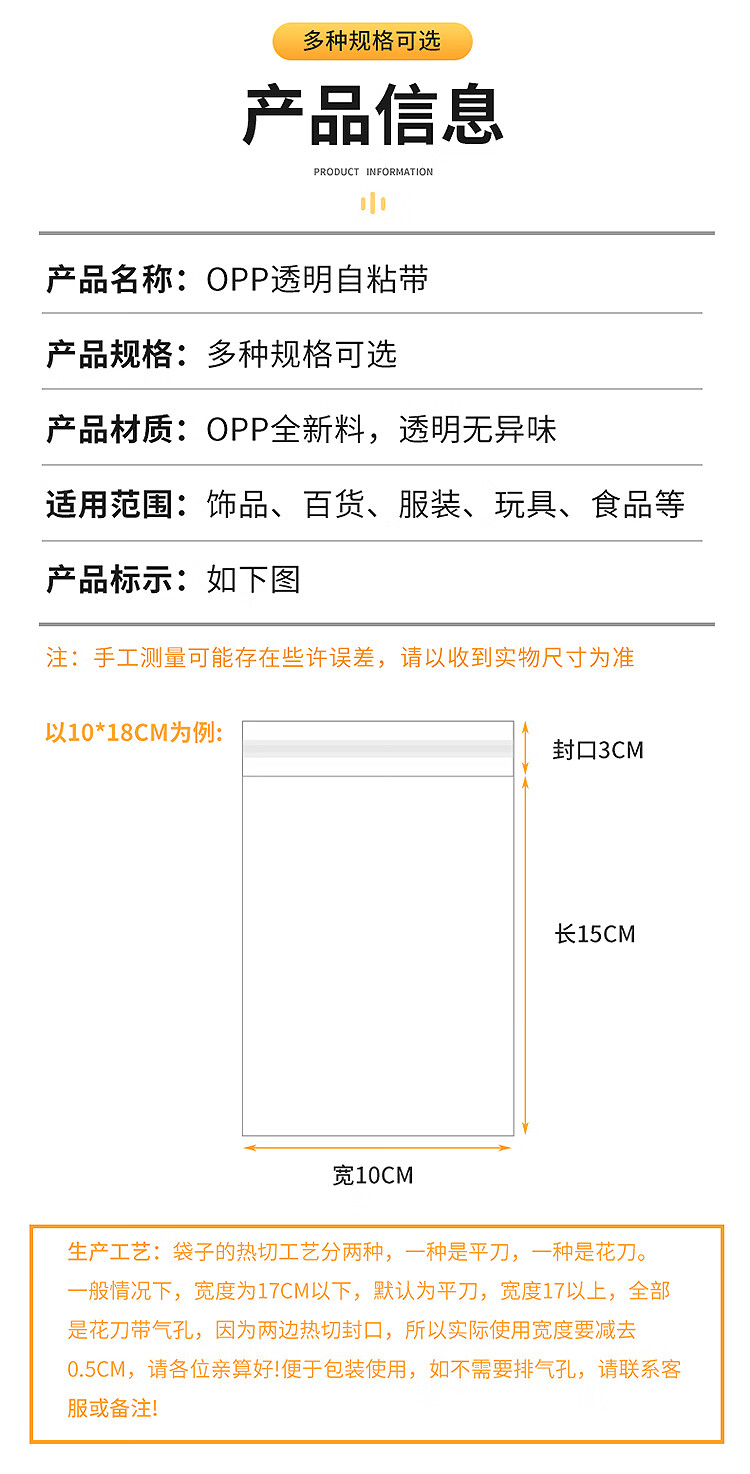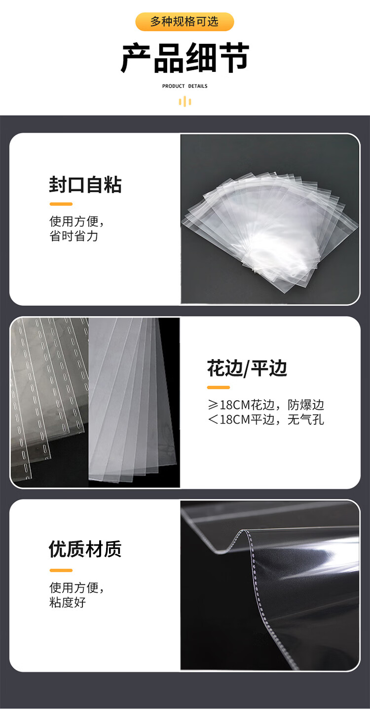 赫思迪格 不干胶透明自粘袋 JG-1067 50*70cm 加厚7丝 100个 1件