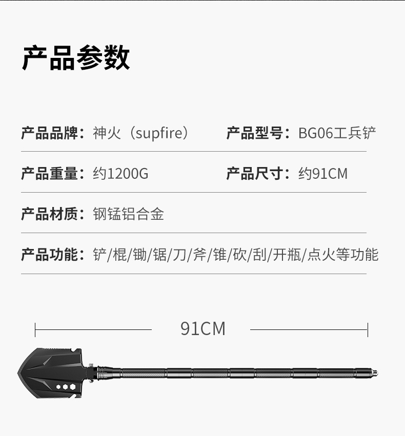神火 多功能兵工铲 BG06 锰钢 4节 铲子+铲头套+手纳袋+包装盒 1个