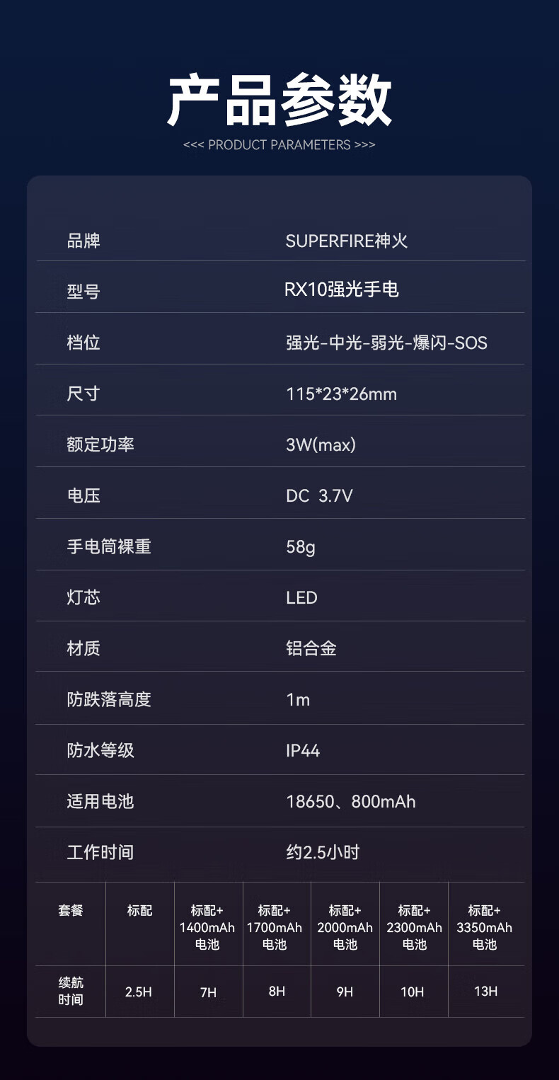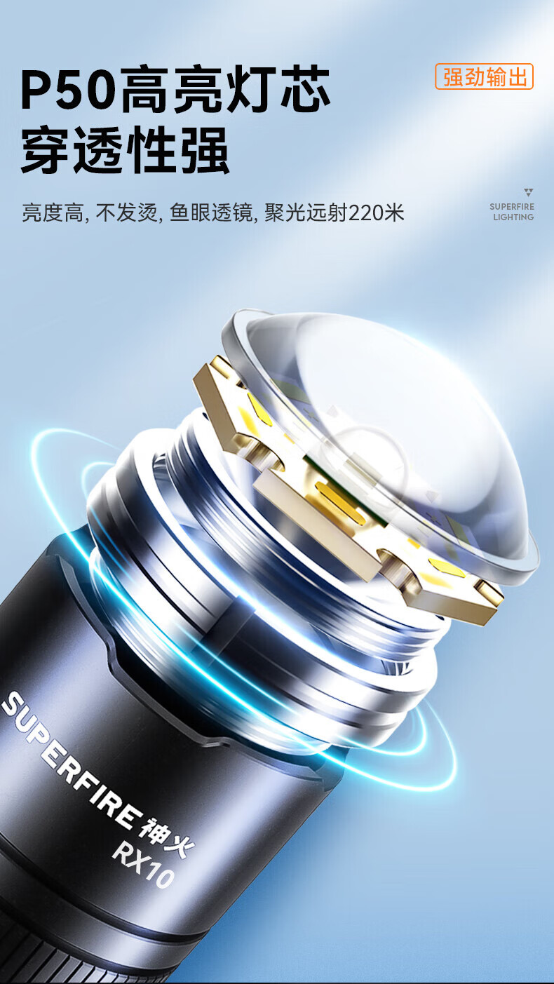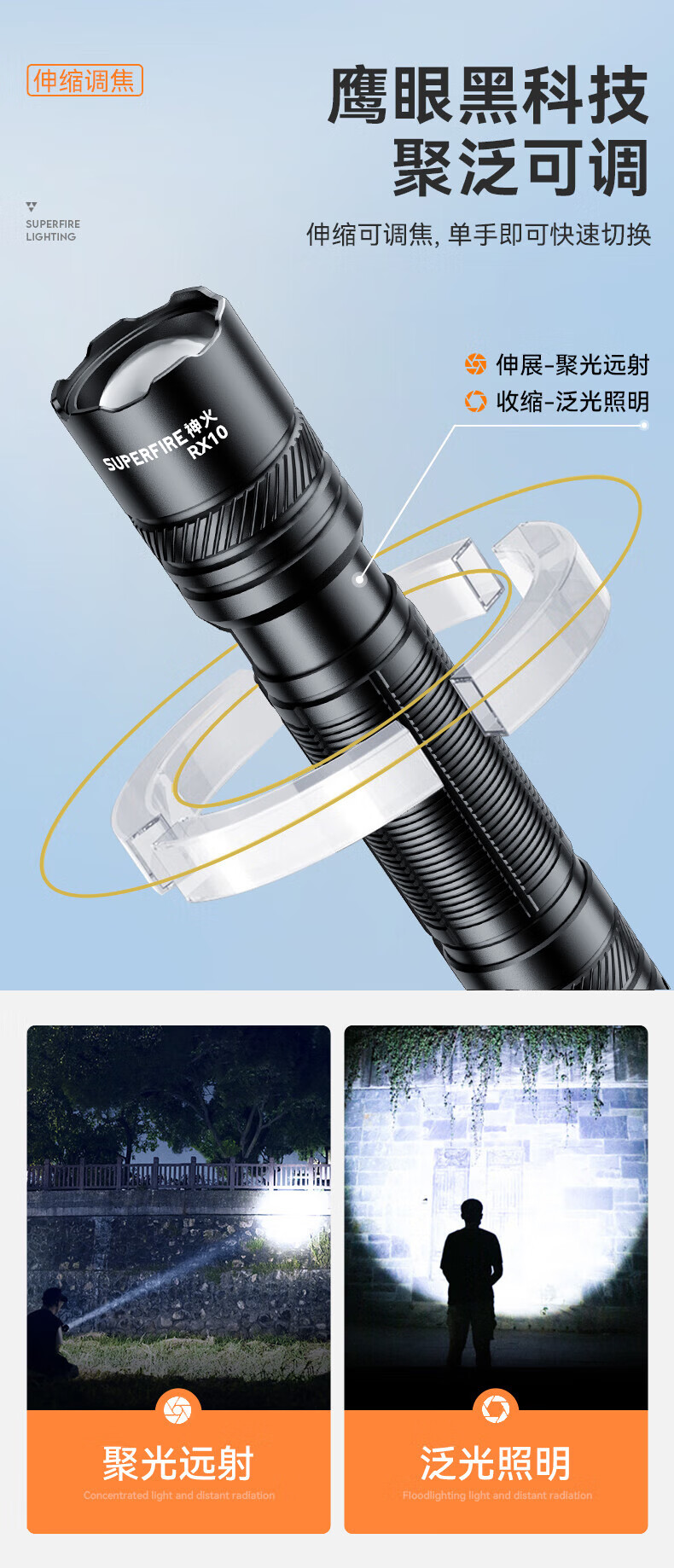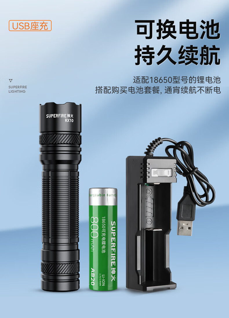 神火 聚光远射手电筒 RX10 3W 115*23*26mm 1个