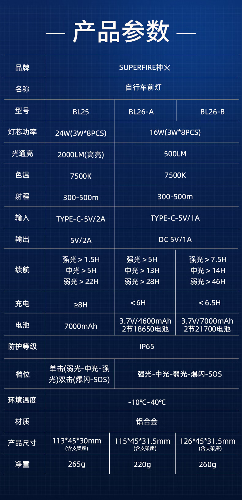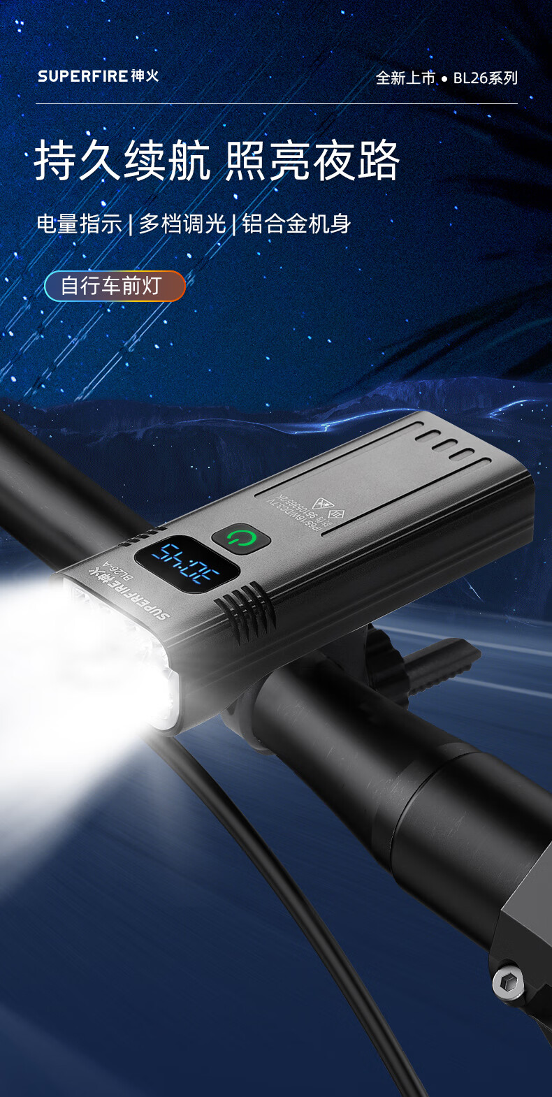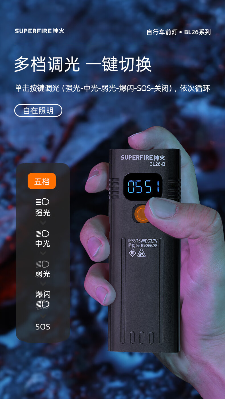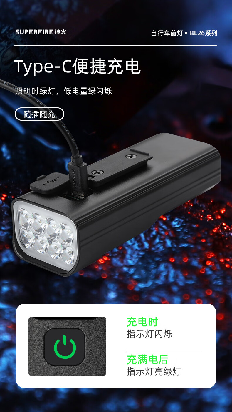 神火 自行车前灯 BL26-B 灯+Type-C充电线 1个