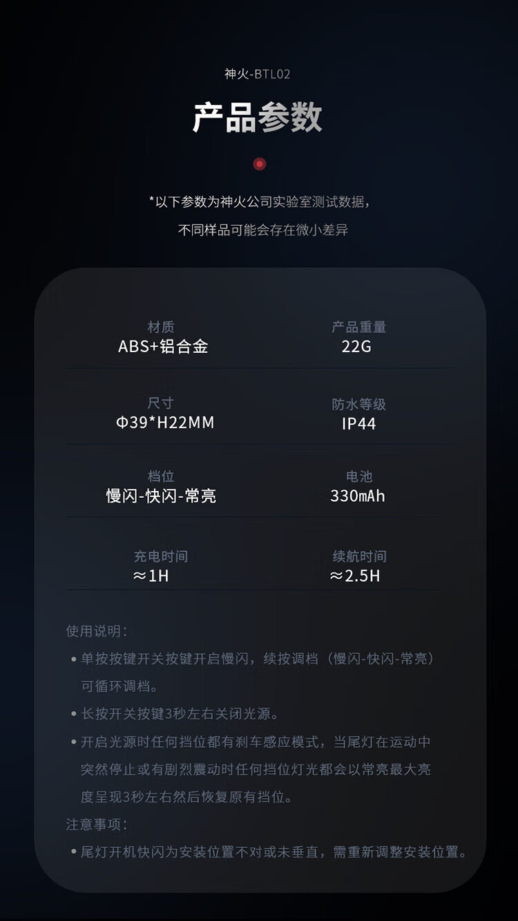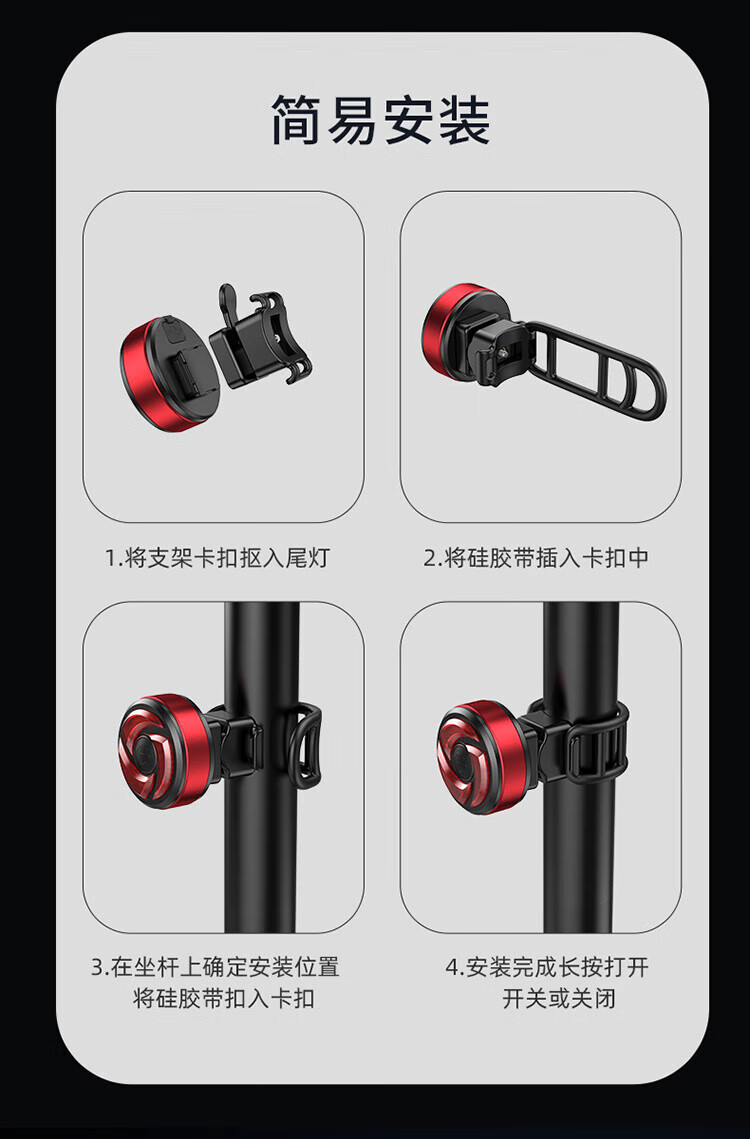 神火 自行车尾灯 BTL02 灯(红色+黑色)+USB充电线+卡扣+硅胶带 1个