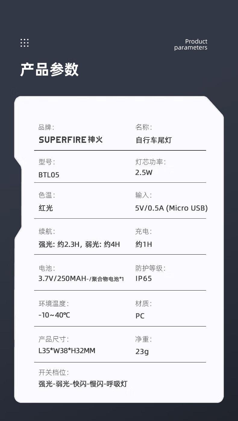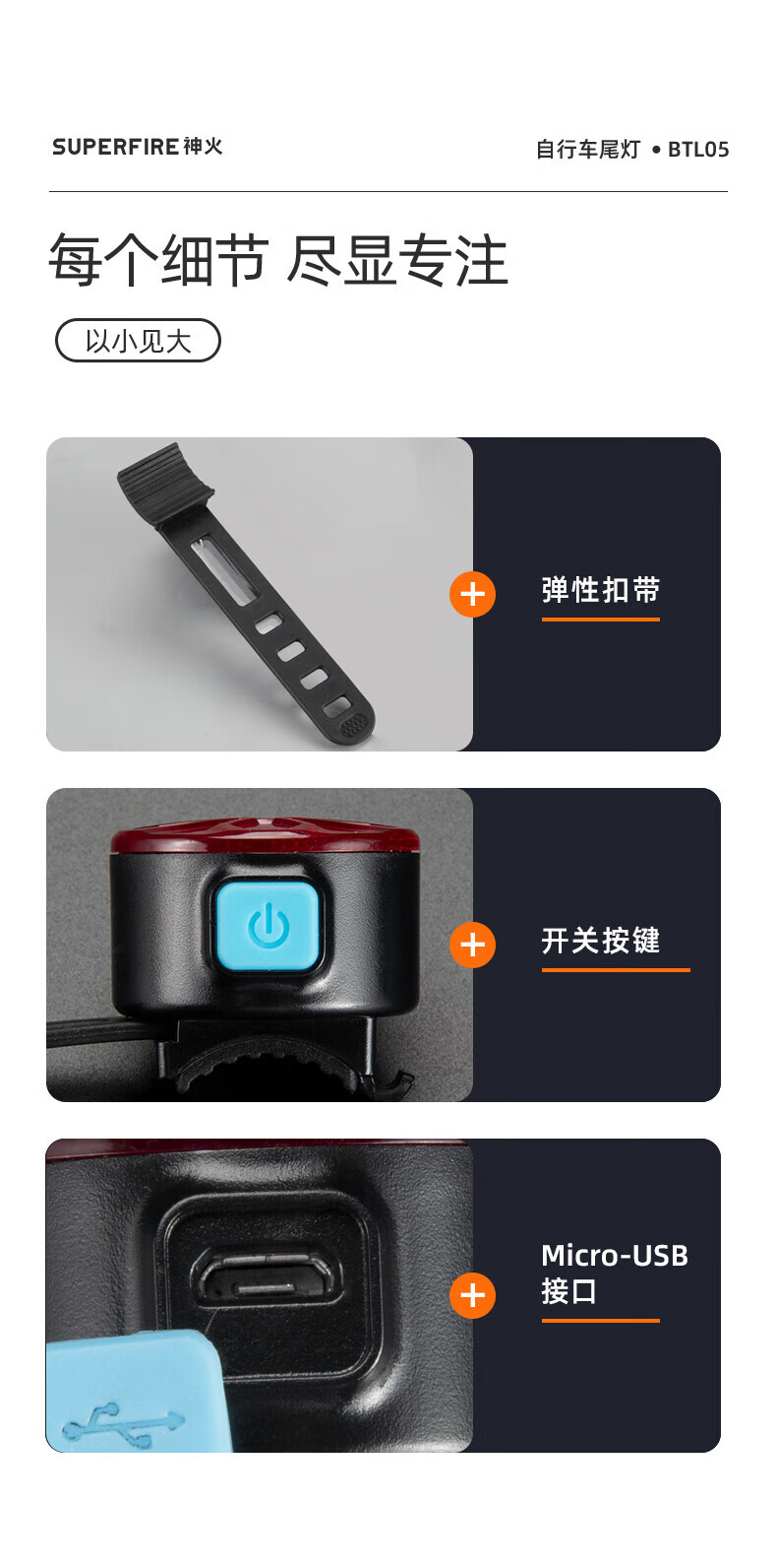 神火 自行车尾灯 BTL05 灯+充电线 1个