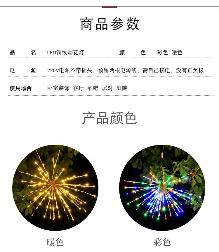 豪牧匠 LED户外烟花灯 40cm 接电款 暖光 5只 1件