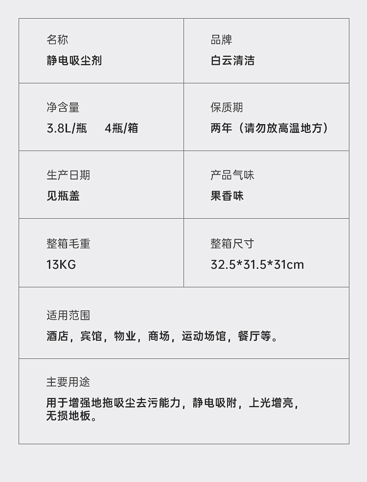白云清洁 油性静电吸尘剂 JB106 3.78L 4桶 1箱