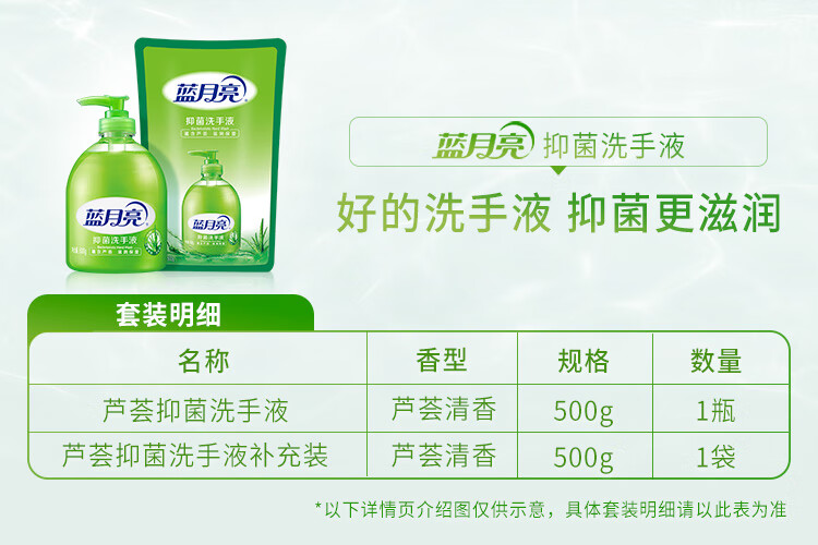 蓝月亮 芦荟抑菌洗手液 瓶装500g+袋装500g 2件 1套