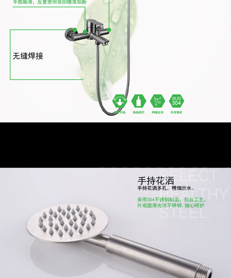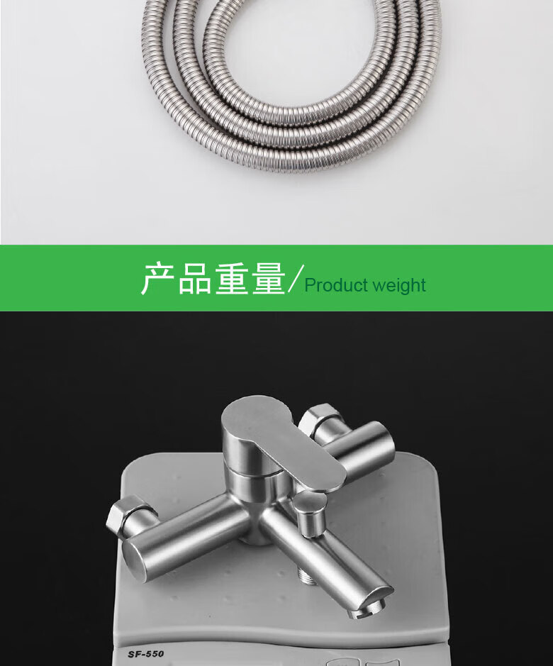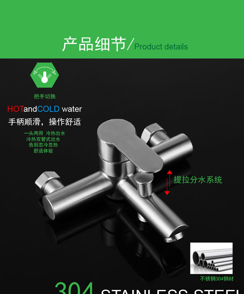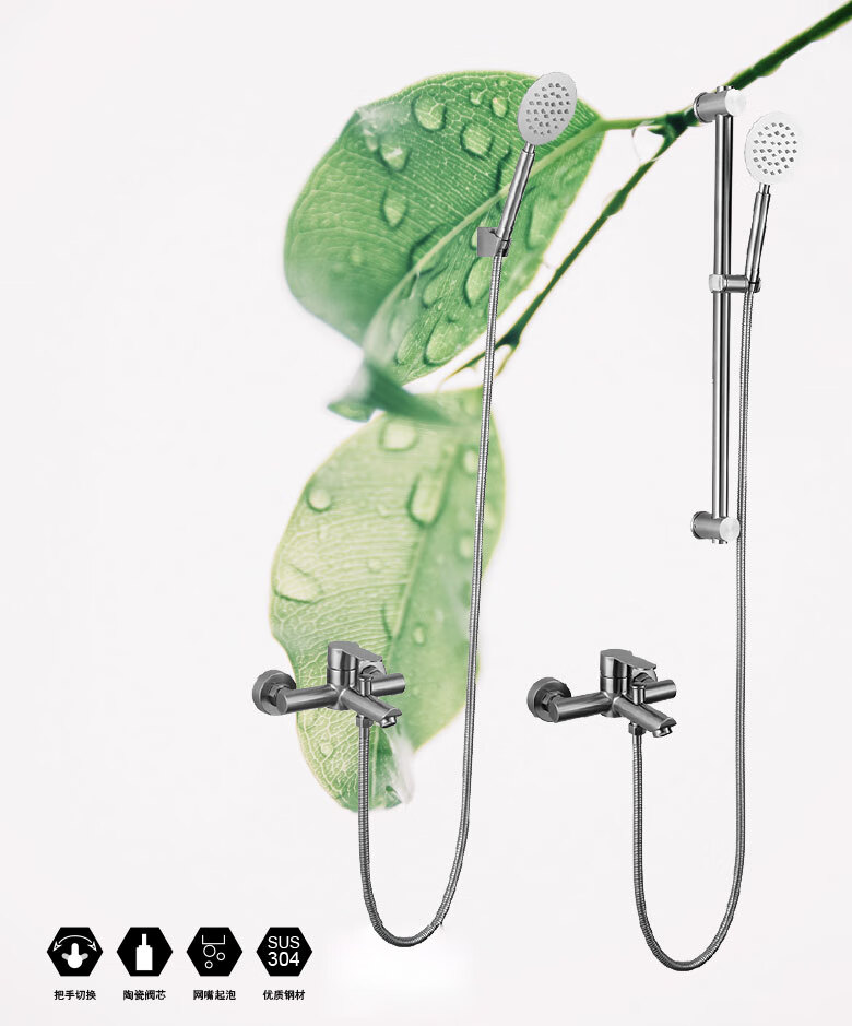 龙代 304不锈钢浴缸三联简易花洒套装 P-H021 安装孔径4分 1个