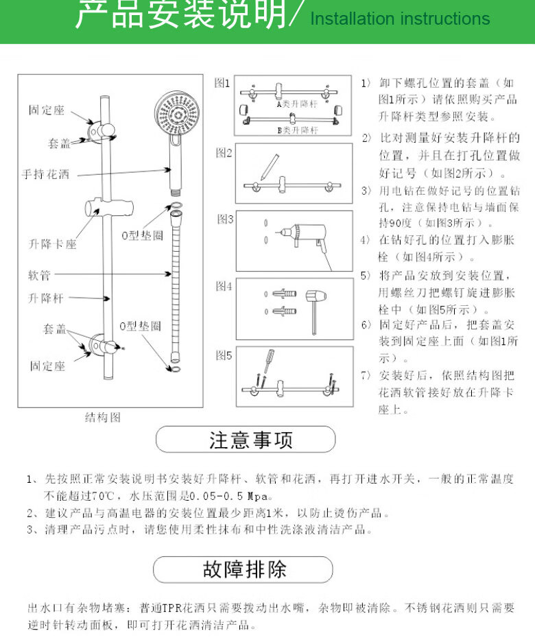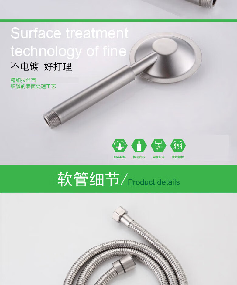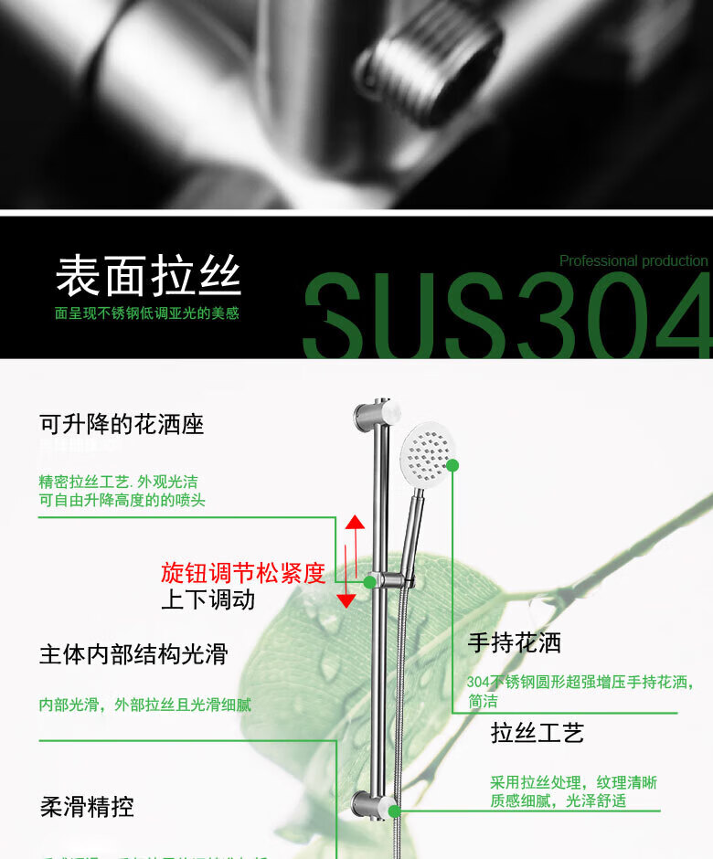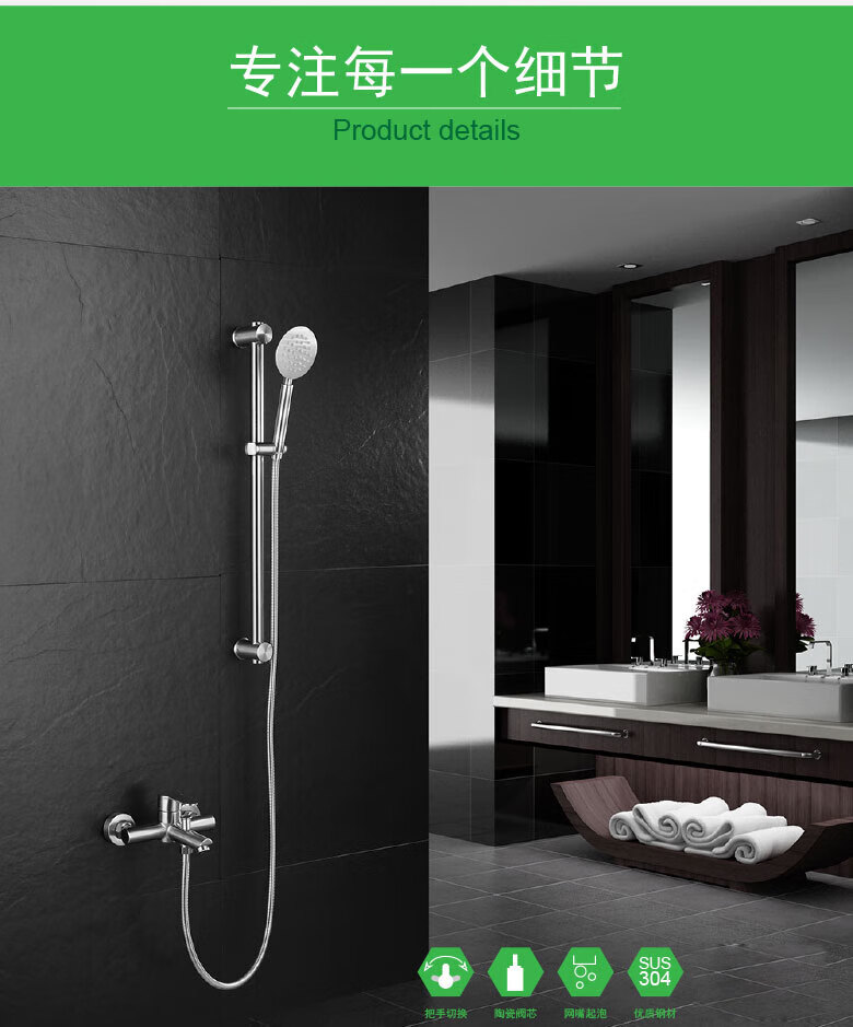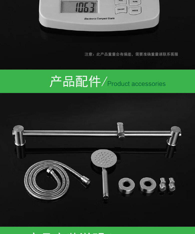 龙代 304不锈钢浴缸三联简易花洒套装 P-H021 安装孔径4分 1个