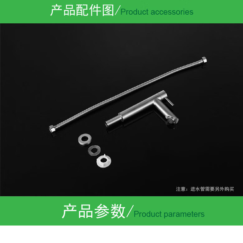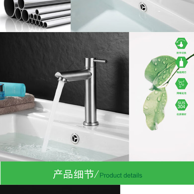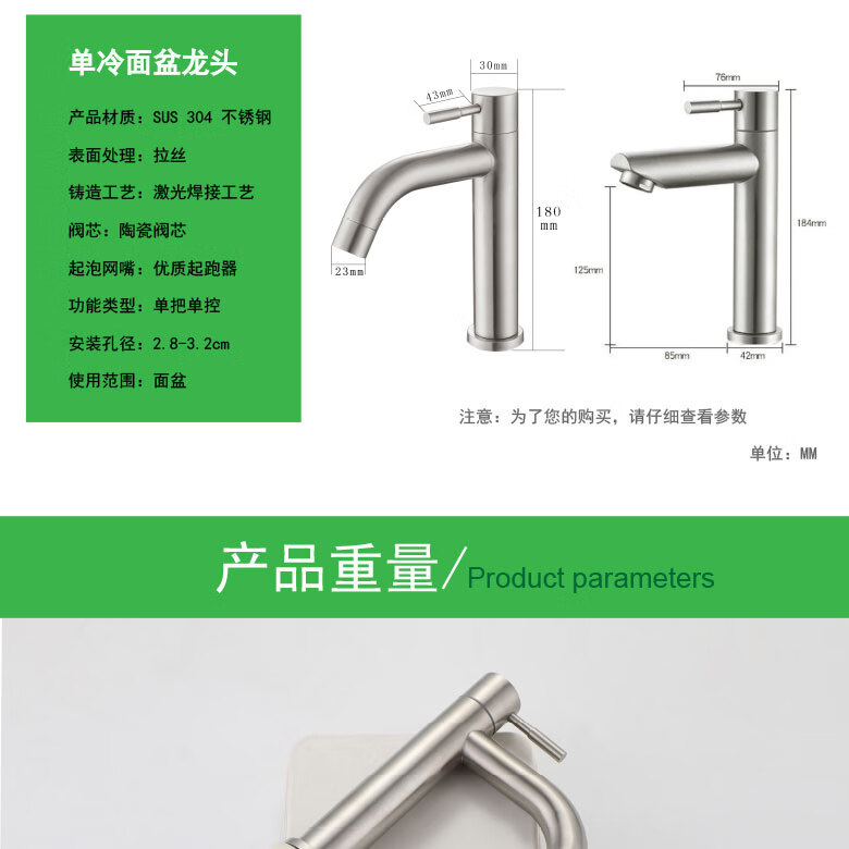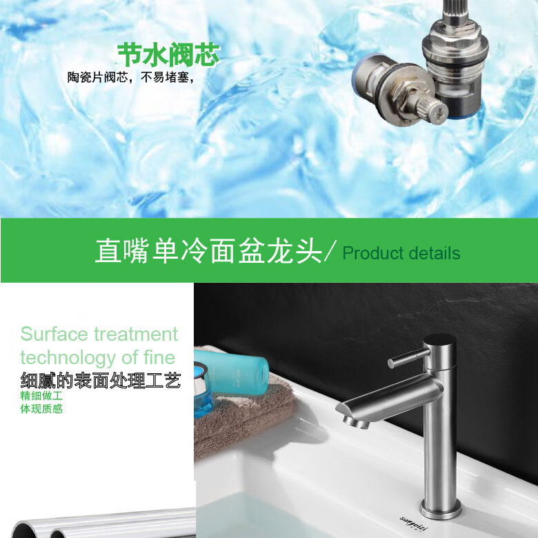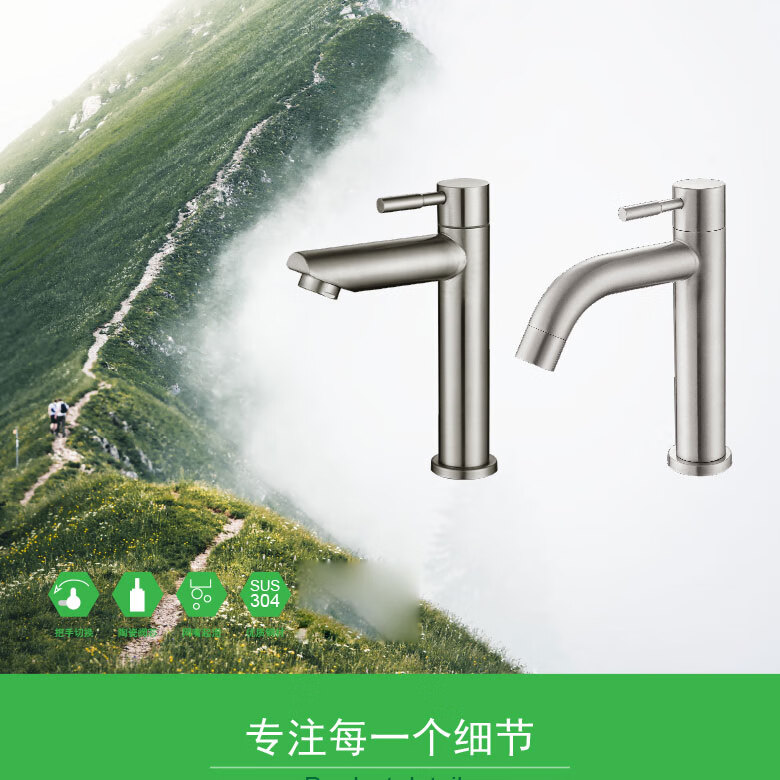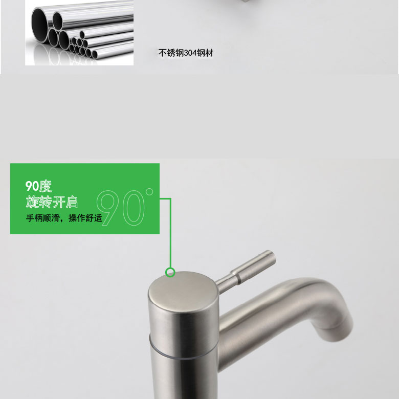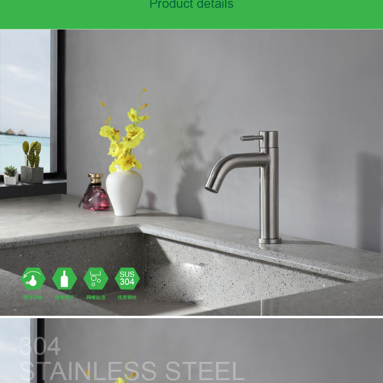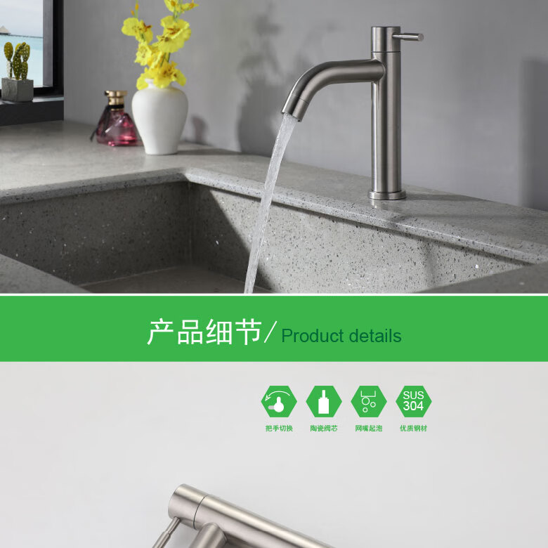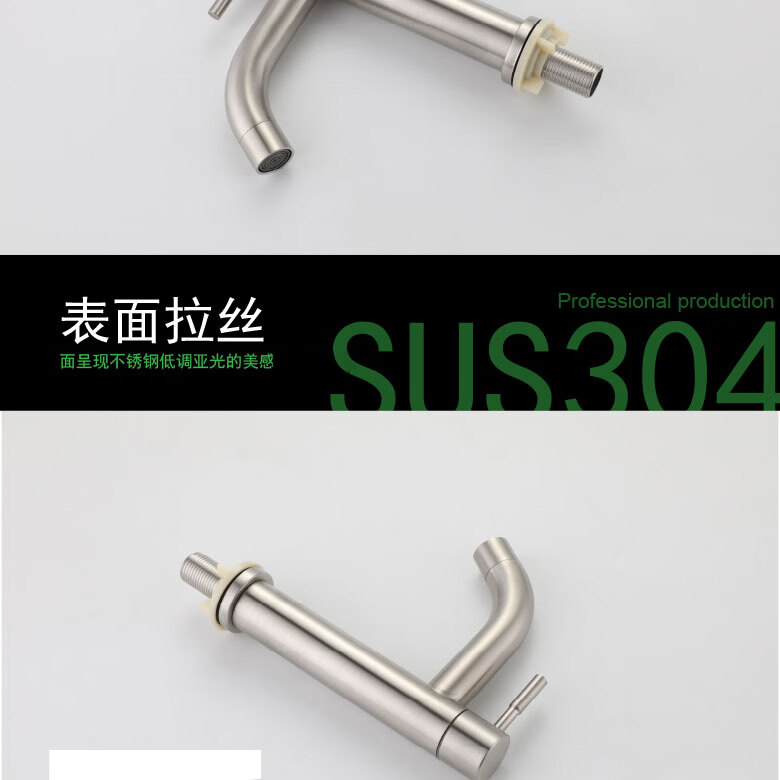 龙代 不锈钢单冷面盆水龙头 P-DM003 弯嘴 含进水管 1个