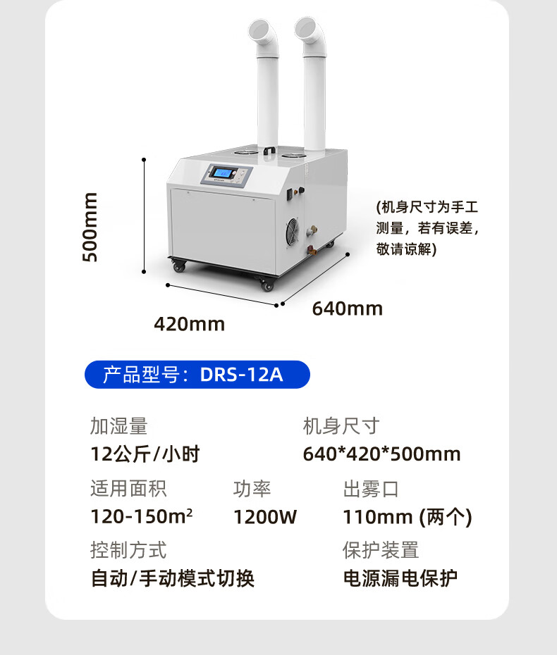 多乐信 喷雾式工业加湿器 DRS-12A 1200W 双管110mm 12kg/h 1台