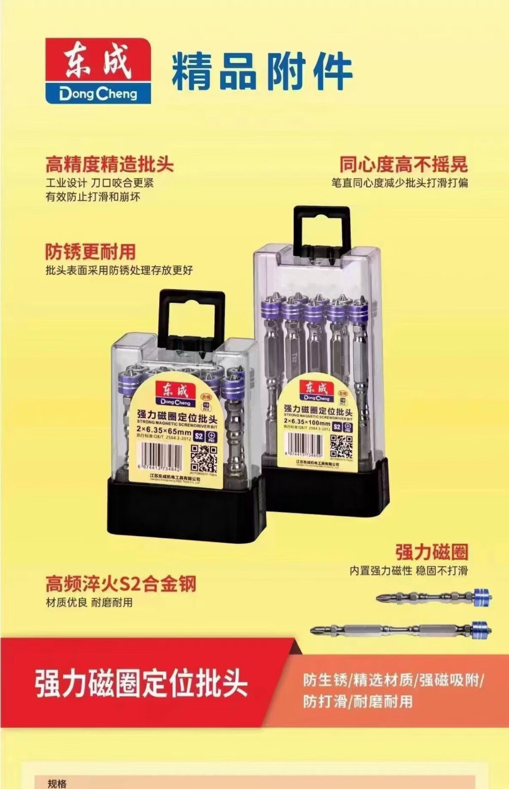 东成 双头十字螺丝批头 S2强磁 6.35mm PH2x100 10支 1盒