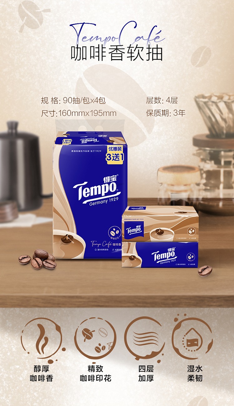 得宝 咖啡味面巾纸 160×195mm 4包 1提