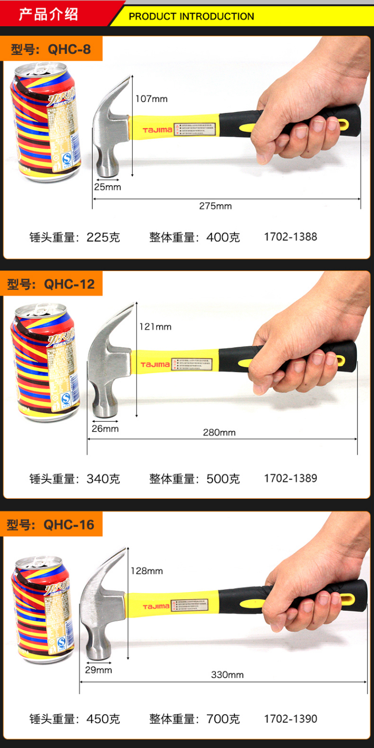 田岛 玻璃纤维柄羊角锤 1702-1388 8oz 1把