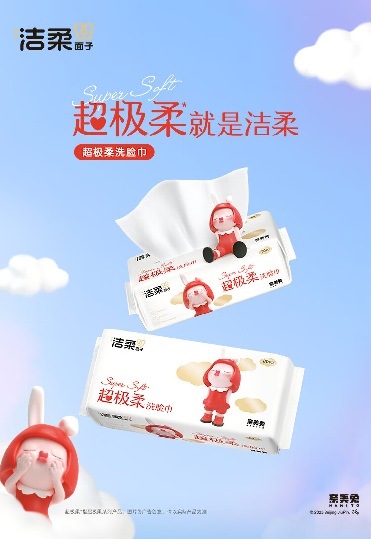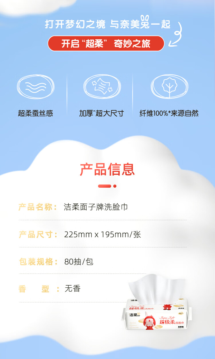 洁柔 超柔洗脸巾 80抽 3包 1件