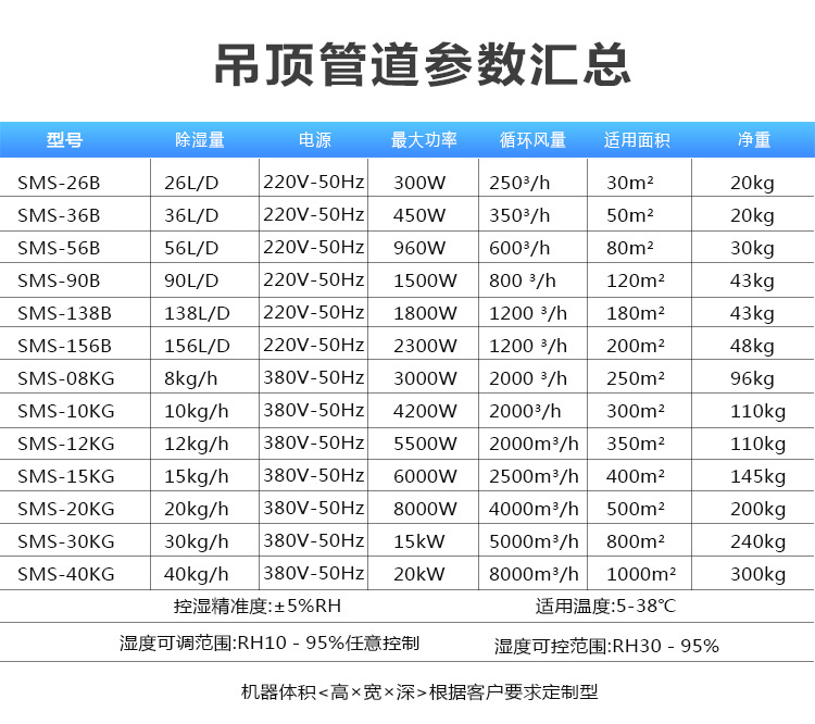 湿美 吊顶管道除湿机 SMS-26B 壁挂式 300W 1台
