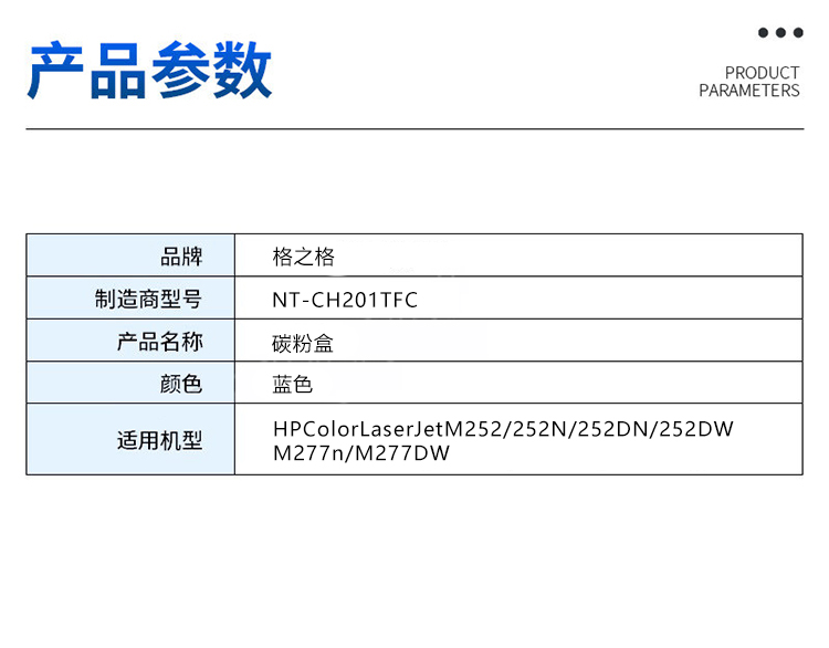 格之格 碳粉盒 NT-CH201TFC 蓝色 适用CF401A易加粉 1个