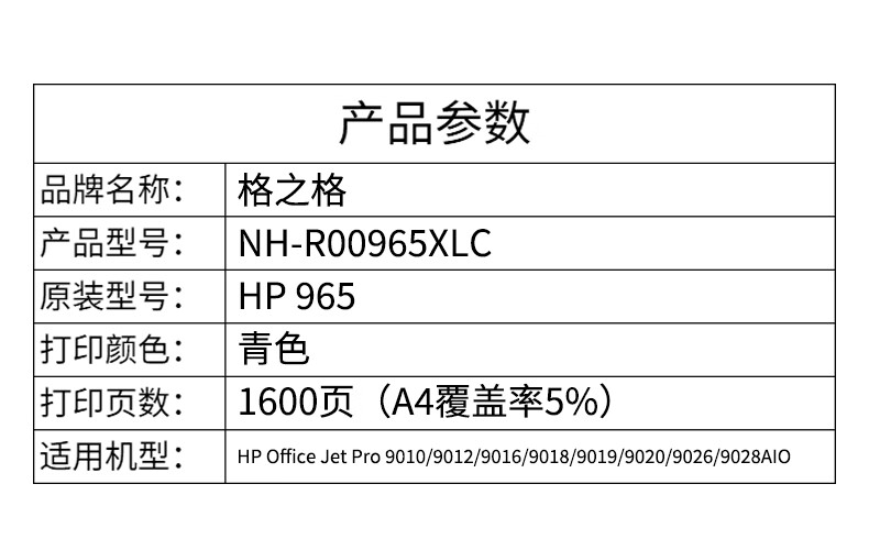 格之格 墨盒 NH-R00965XLC 蓝色 25.5mL 1个
