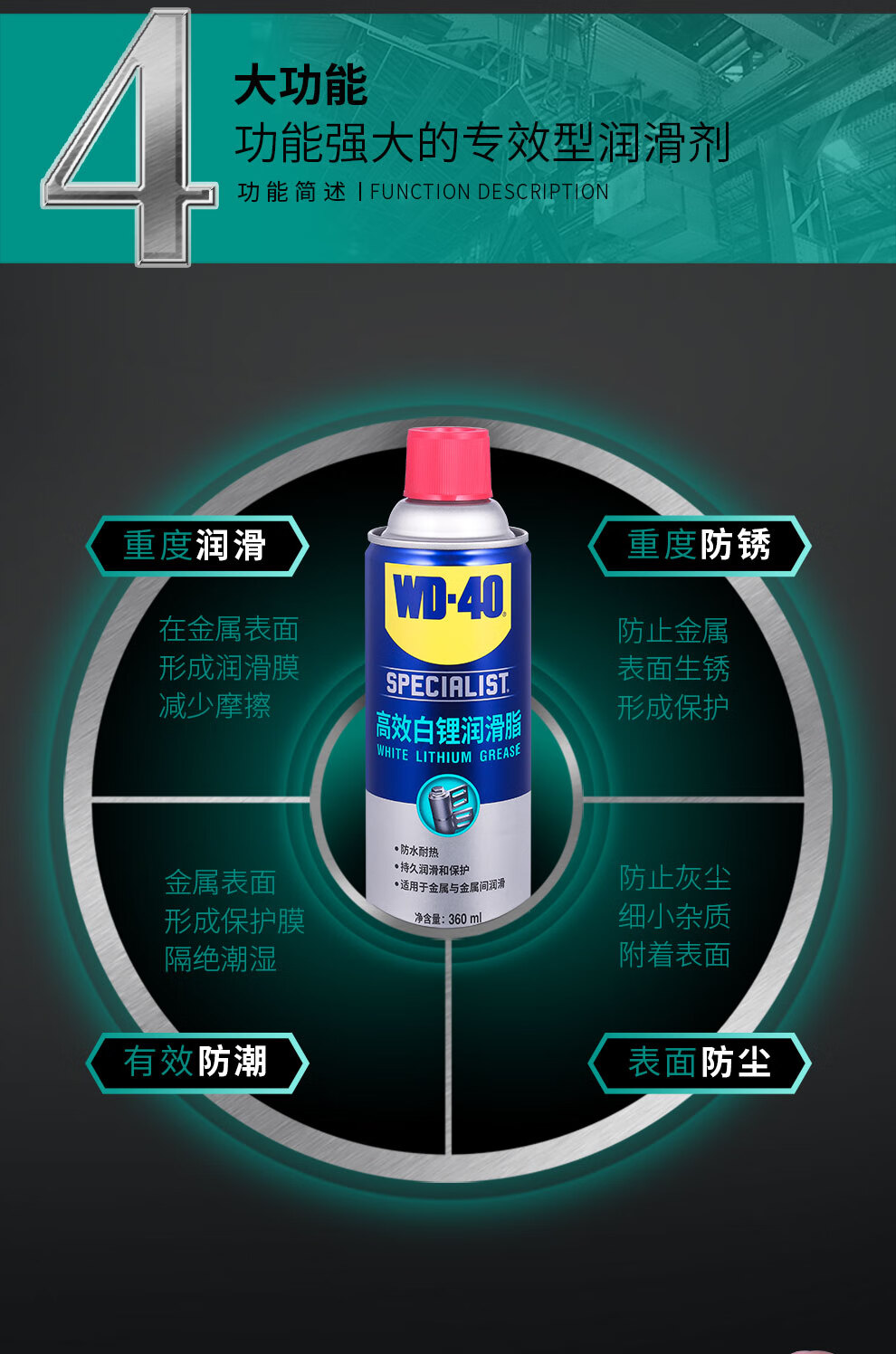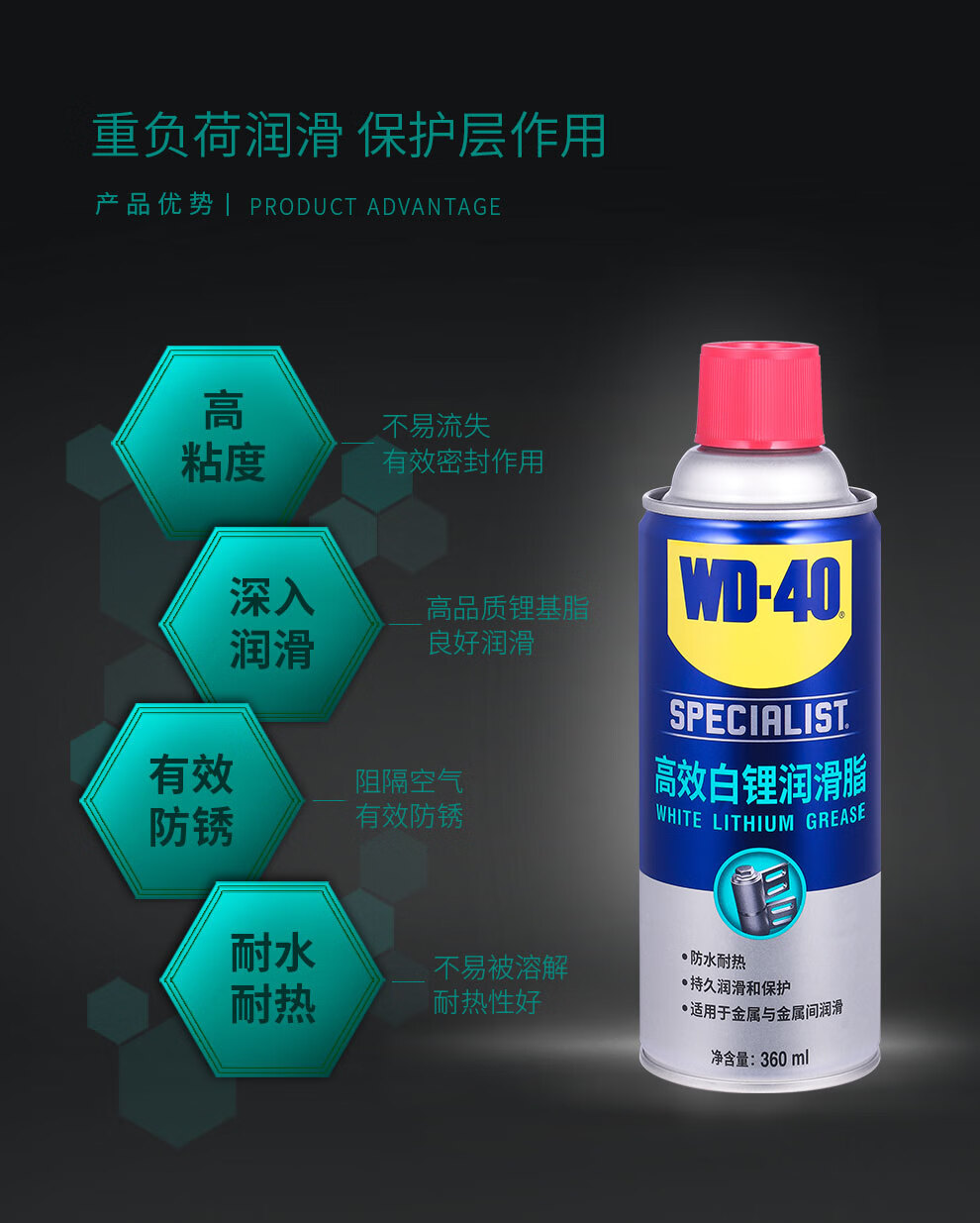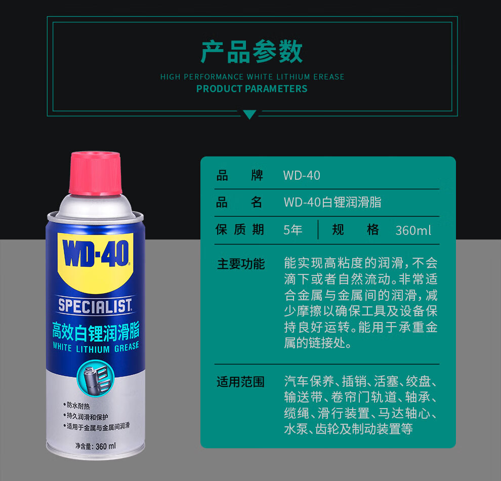 WD-40 专效型高效白锂润滑剂 852336 360ML 1瓶