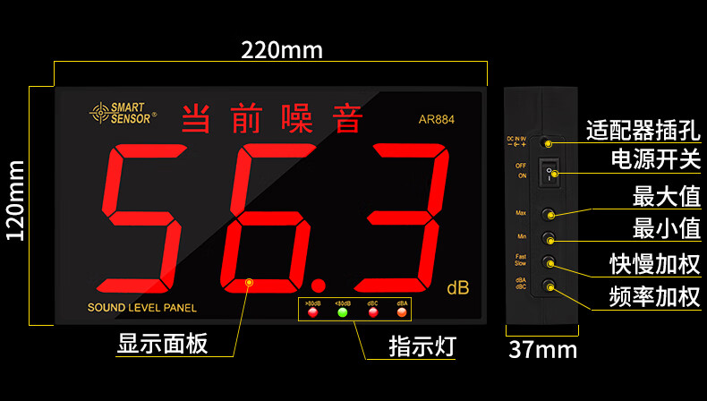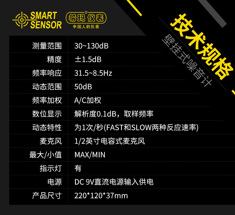 希玛 壁挂式噪音计 AR884A 1个