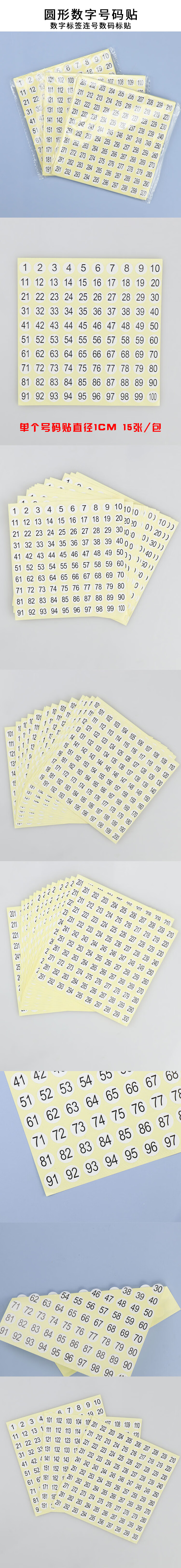 赫思迪格 圆形号码贴 JG-1576 1-100 15张 1包