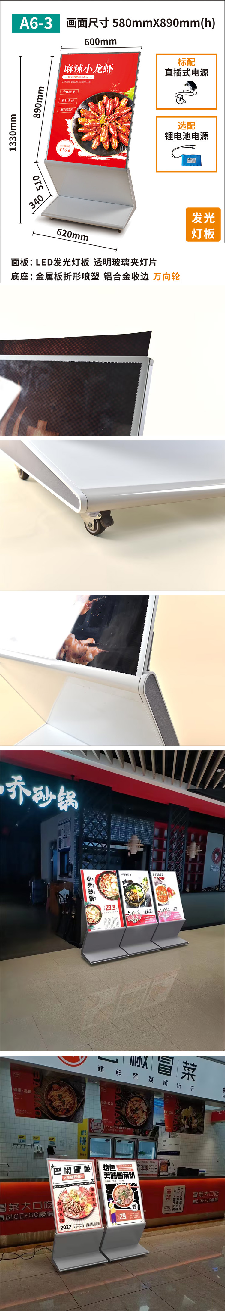 LED灯发光立牌展示牌A6-3(带移动电源)