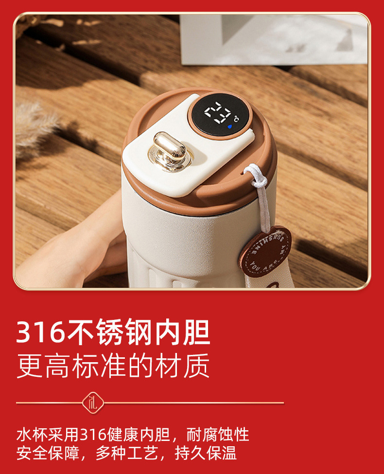 智美环球 316数显咖啡杯 三件套 红色 450mL咖啡杯+网红伞+语音款颈椎仪 1套