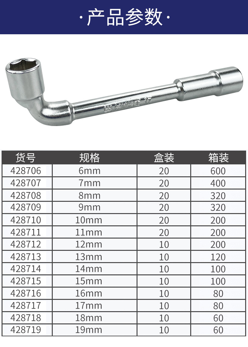 • 商品名称:长城精工 亚光铬穿孔L型套筒扳手